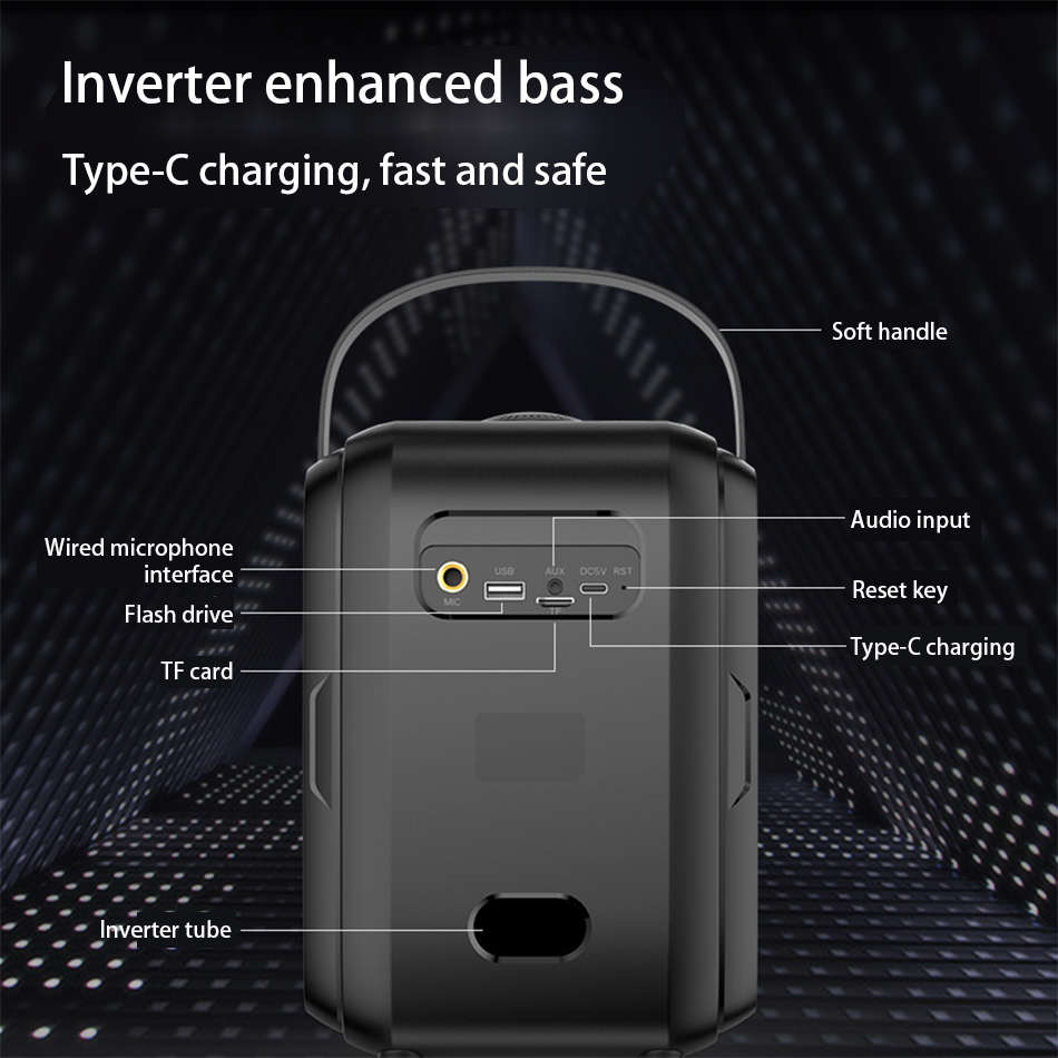 Stylish ring aperture design, lightweight and portable. Wireless connection, full frequency speaker, clear sound quality. Horizontal placement, stable and beautiful.
