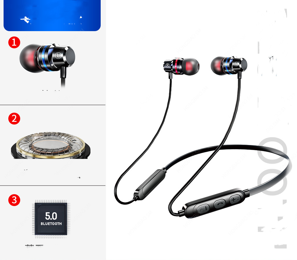 Bluetooth Wireless Earphone Hanging Neck Motion Noise Reduction