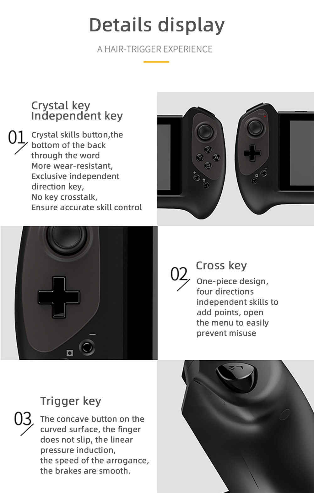 4. High-precision rocker, smooth operation, equipped with textured texture pole to prevent operation errors.