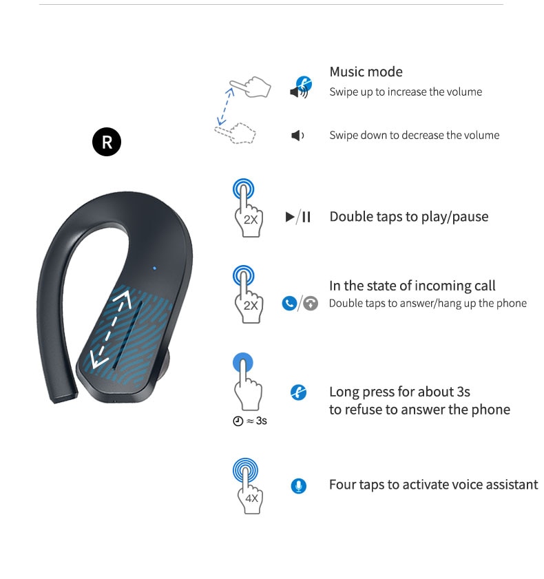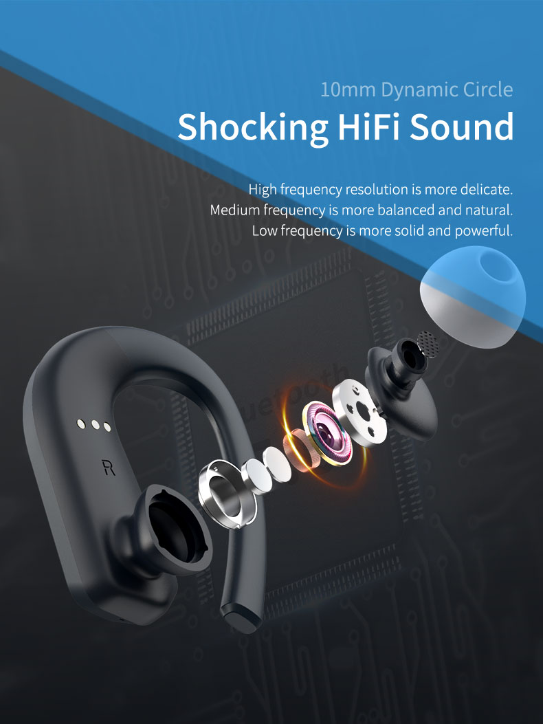 Special ear hook design, no fear of falling when moving or making difficult excises, secure fit.
