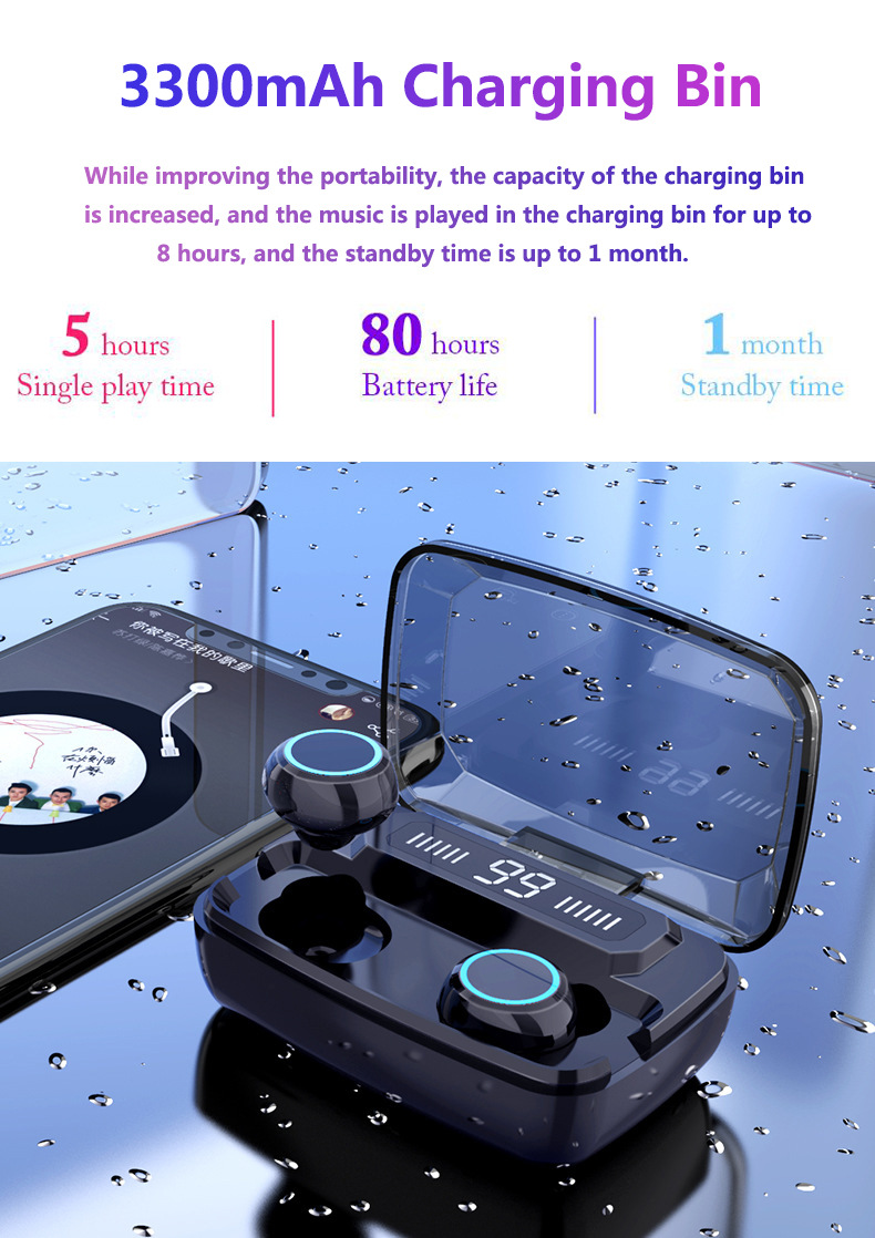 Battery capacity: 50 mah headphones, charging compartment: 1200 mah actual capacity (box / instruction manual does not write the charging compartment capacity)
