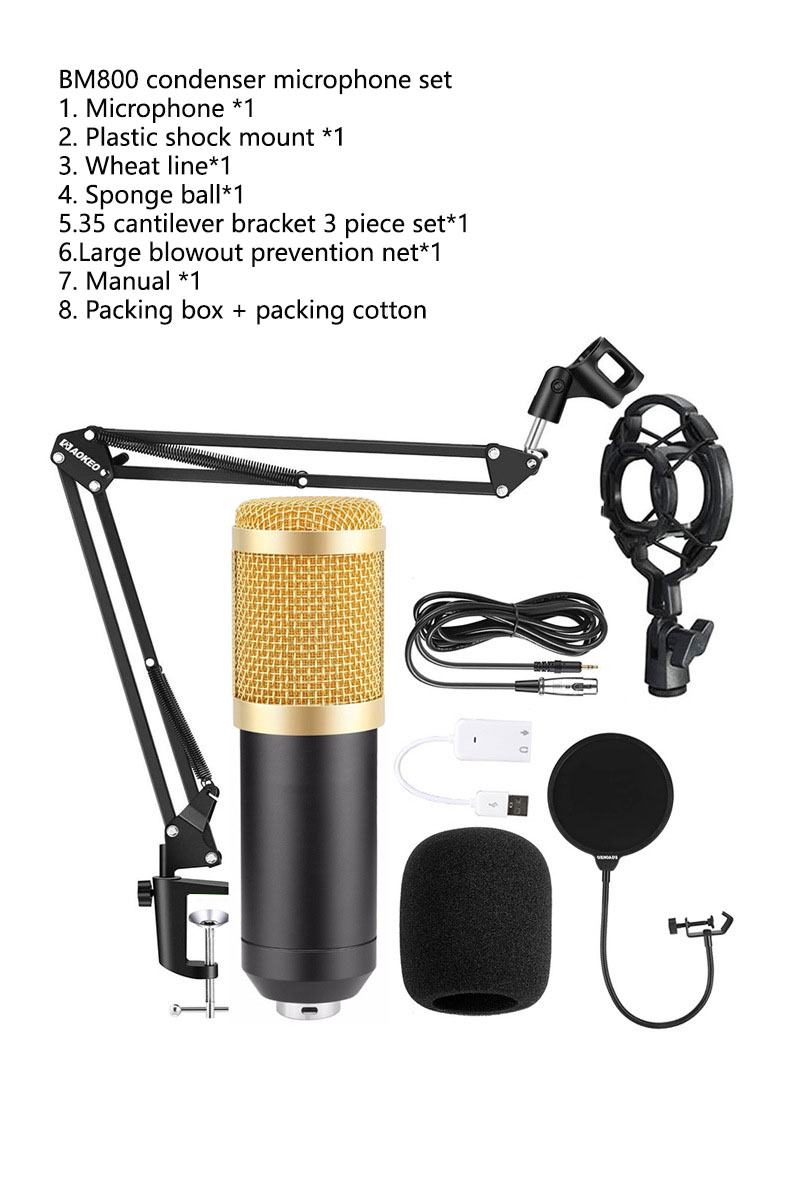 Bm800 Condenser Microphone Microphone V8 Sound Card Cross-Border Anchor Computer Recording Bracket Large Diaphragm Live Broadcast Set