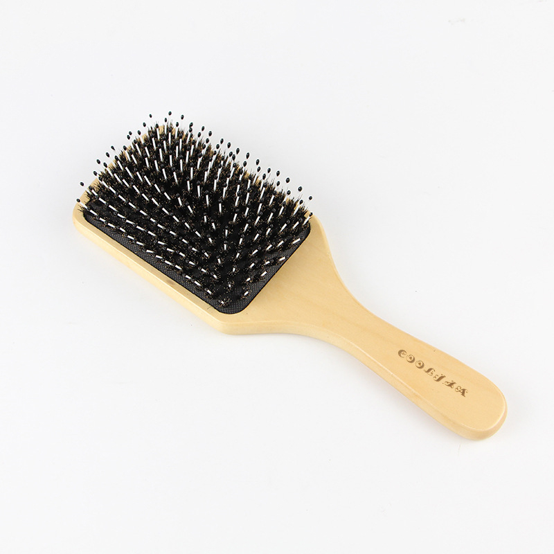 Boar Bristle Airbag Comb Bamboo Wood Massage