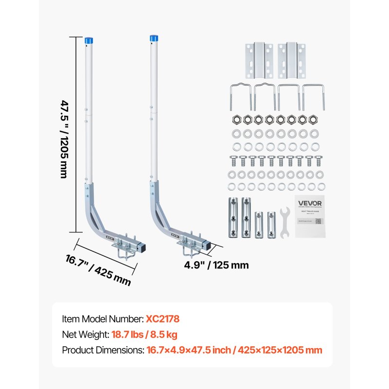 Adjustable Height & Width: Our boat guide poles offer two height options: 30.5 in (775 mm) or 47.5 in (1205 mm), with up to 3.9 in (100 mm) individual max width adjustment. Combined with flexible width settings, it fits a wide range of trailers for ski boats, fishing boats, and sailboats