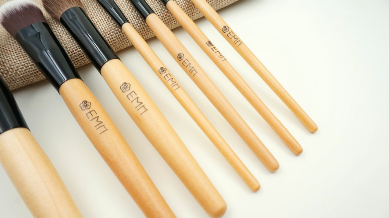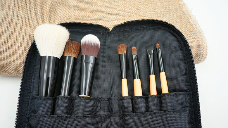 Bobbi Brown makeup brush 7 Mycoplasma wood animal hair cosmetic brush belt leather Makeup Kit spot