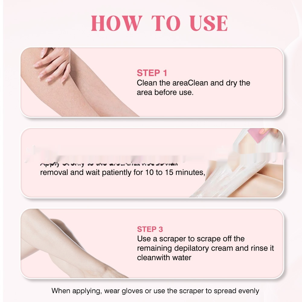 Product specifications: Purple Hair Removal Cream with scraper, Pink Hair Removal Cream