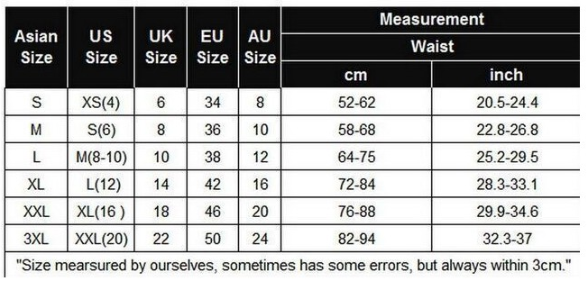 1. Asian sizes are 1 to 2 sizes smaller than European and American people. Choose the larger size if your size between two sizes. Please allow 2-3cm differences due to manual measurement.