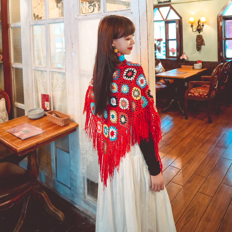 Bohemian Hand-crocheted Fringed Shawl Ethnic Style