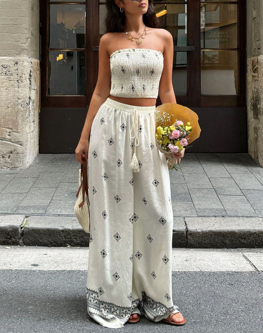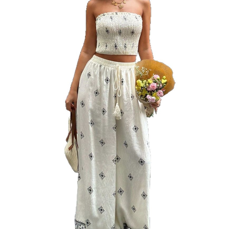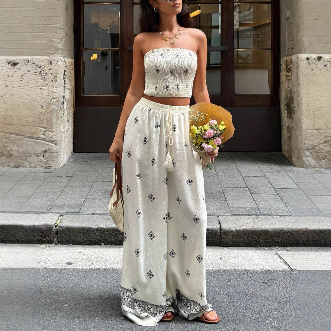 Bohemian Ice-silk Linen Tube Top And Wide-leg Pants