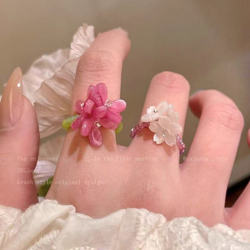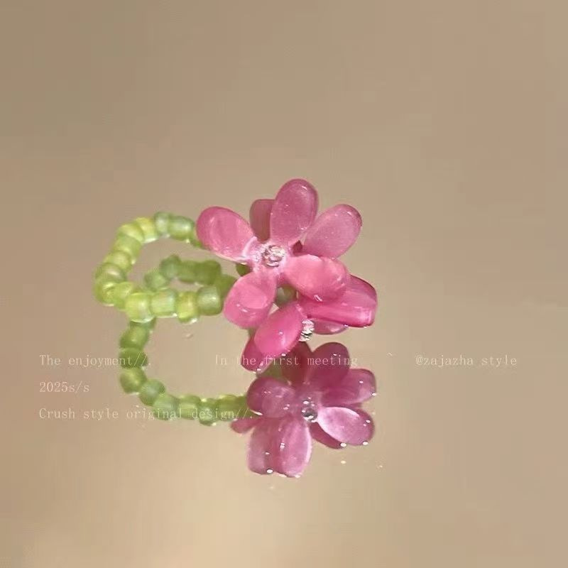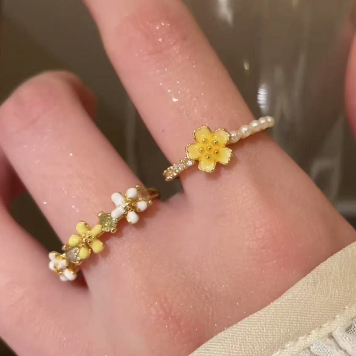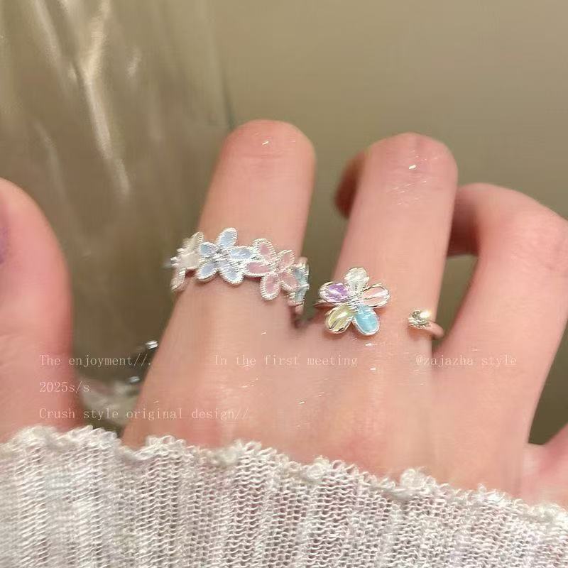 Bohemian Spring Flower Open Ring For Women, Enamel High-End Fashion Index Finger Ring