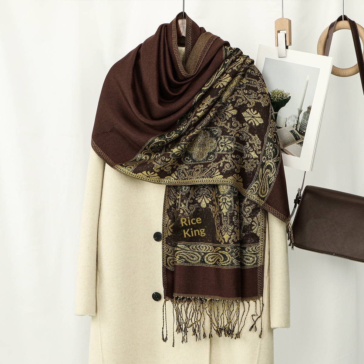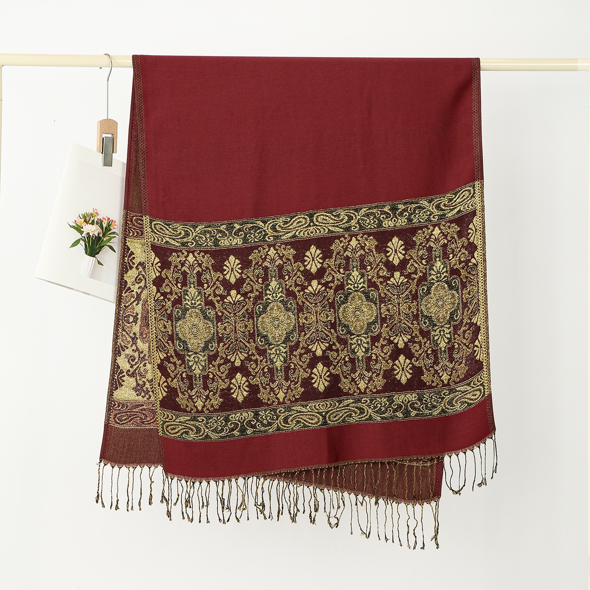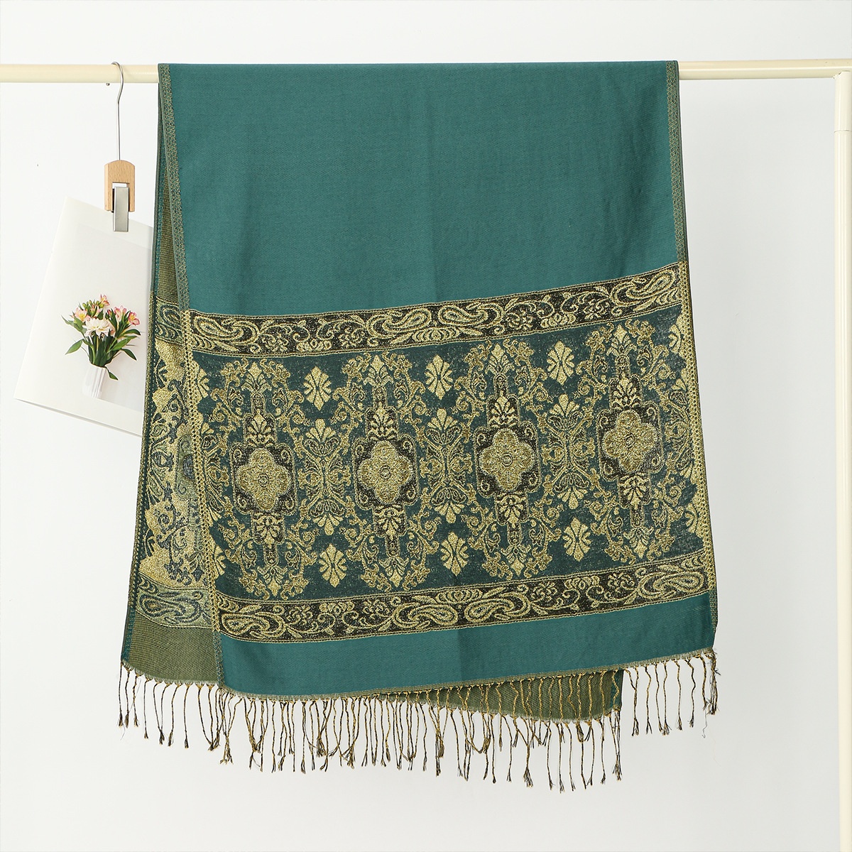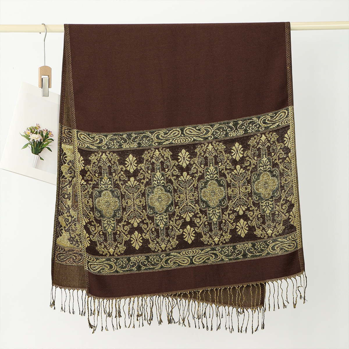 Bohemian-style Cashew-print Long Scarf With Tassels