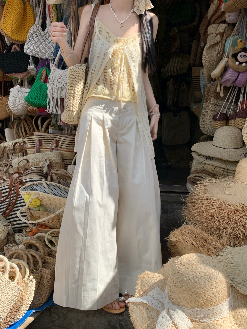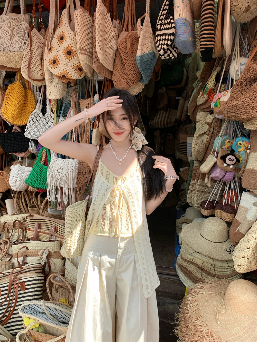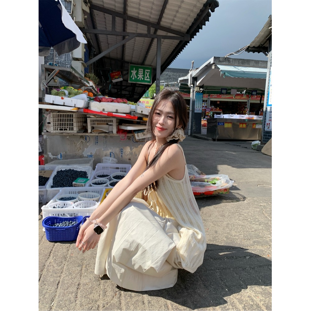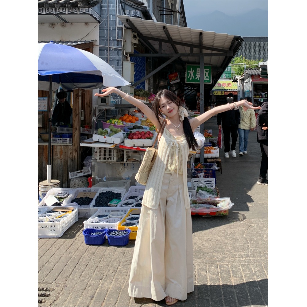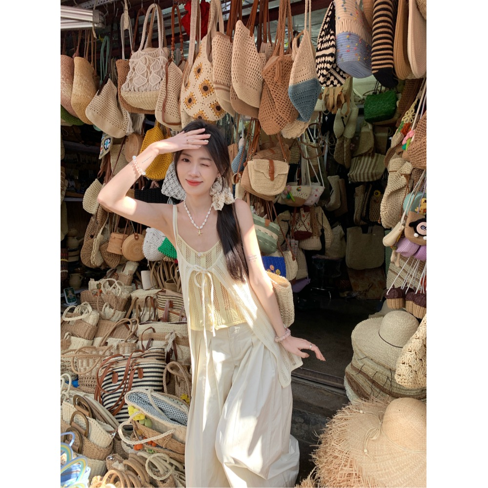 Color: cream yellow suspenders, pants