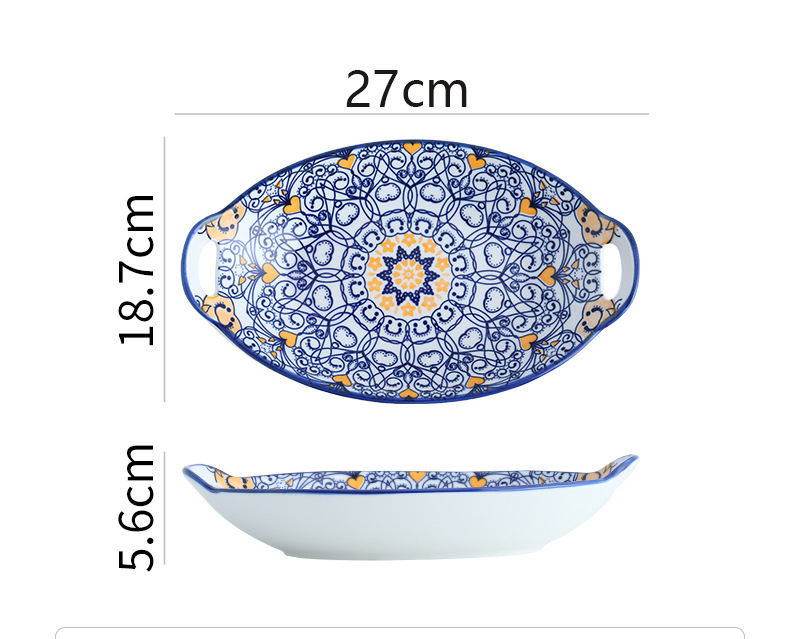 D: 11-inch double ear egg-shaped plate-blue orange,