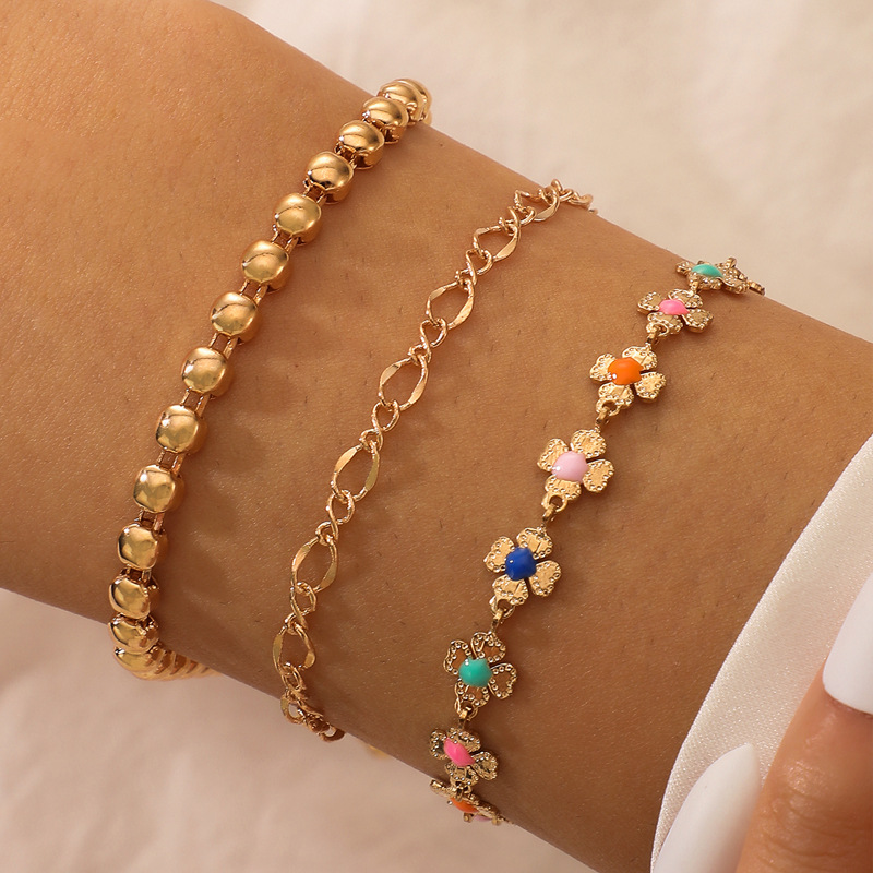 Boho Style Flower Starfish Buckle Circle Bracelet Set