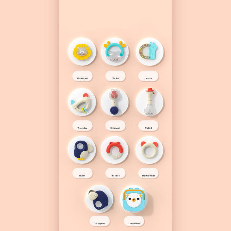 Color: 6-piece set of boiled rattle with storage, 8-piece set of boiled rattle with storage box, 10-piece set of boiled rattle with storage box, 6-piece set of storage box with function: sound and light hand beat drum, 8-piece set Storage box function: sound and light hand drums, 10 sets