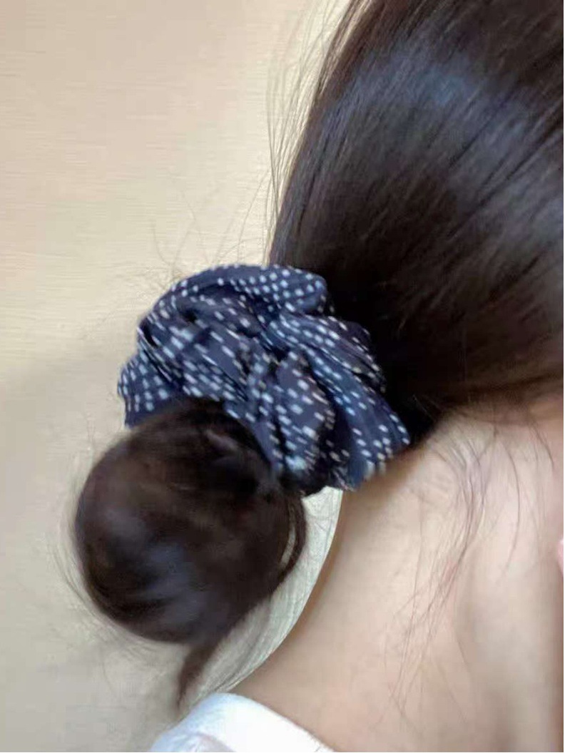 Color: blue small floral, black satin, blue embellishment, black trembling, white satin polka dots, black satin polka dots