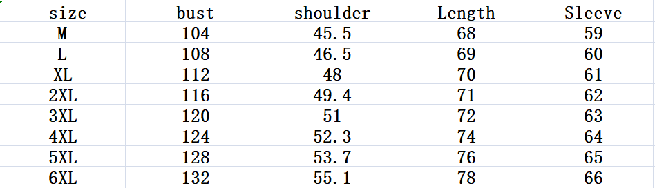 Size: M, L, XL, 2XL, 3XL, 4XL, 5XL, 6XL