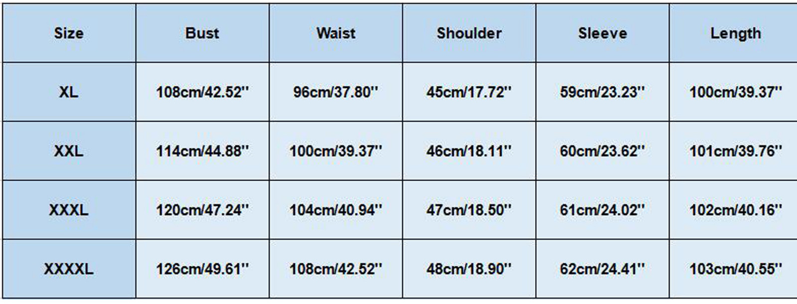 Sizes: L,XL,XXL,3XL,4XL