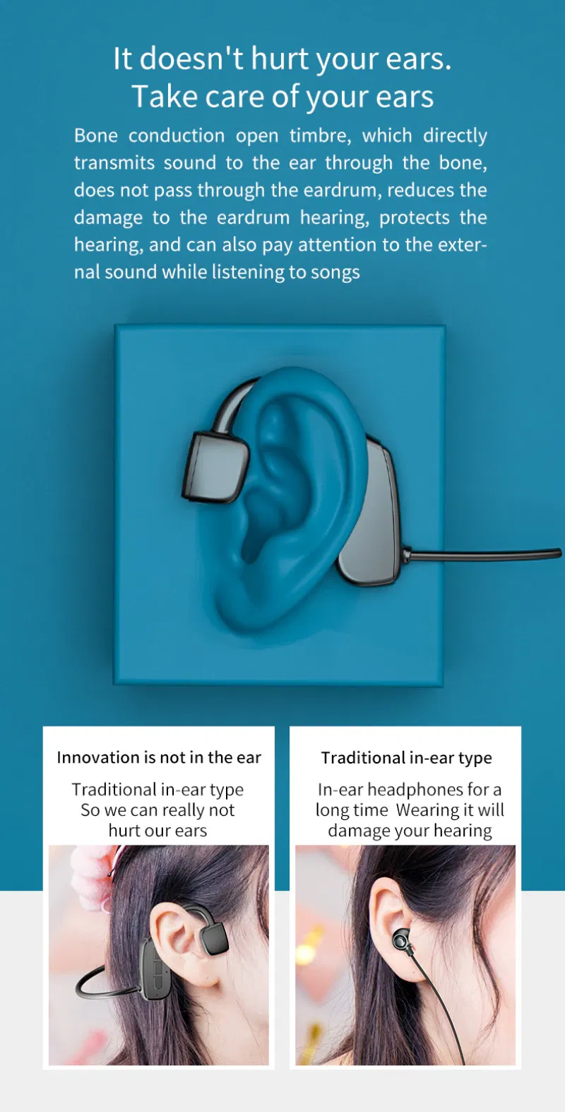 Bone Conduction Headphones Bluetooth 5.1 Wireless Headset Earbuds Outdoor Sport