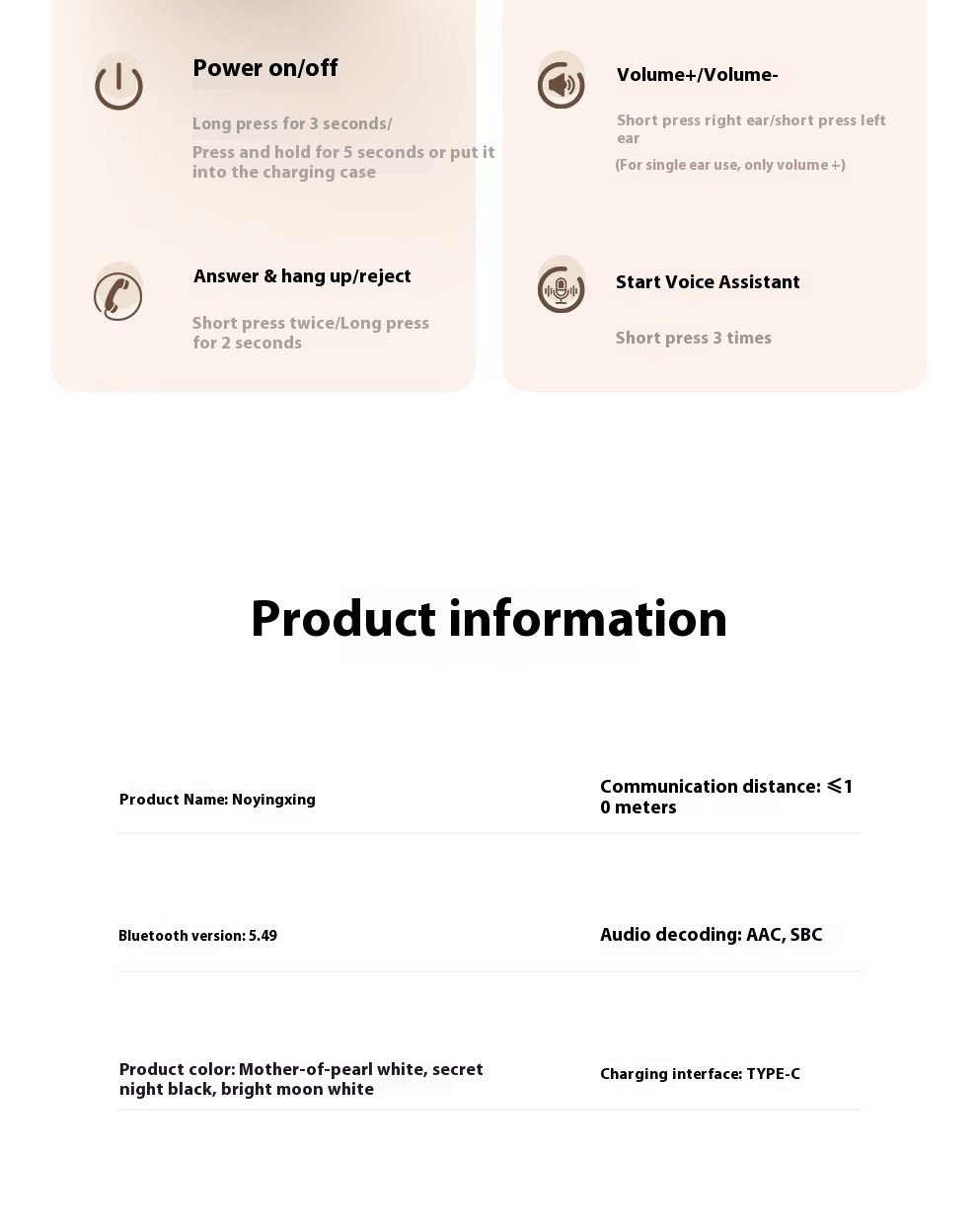 Product information: