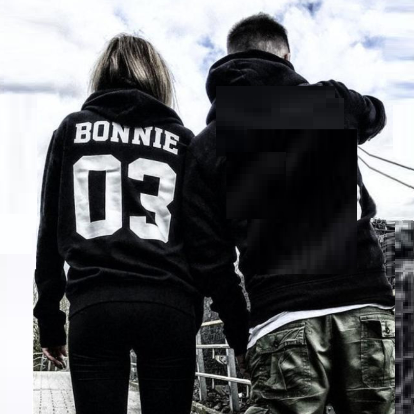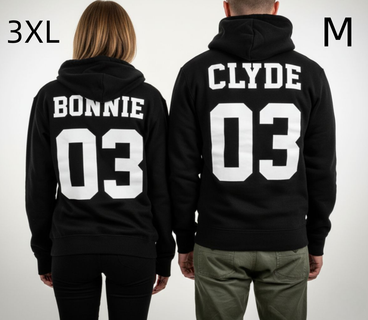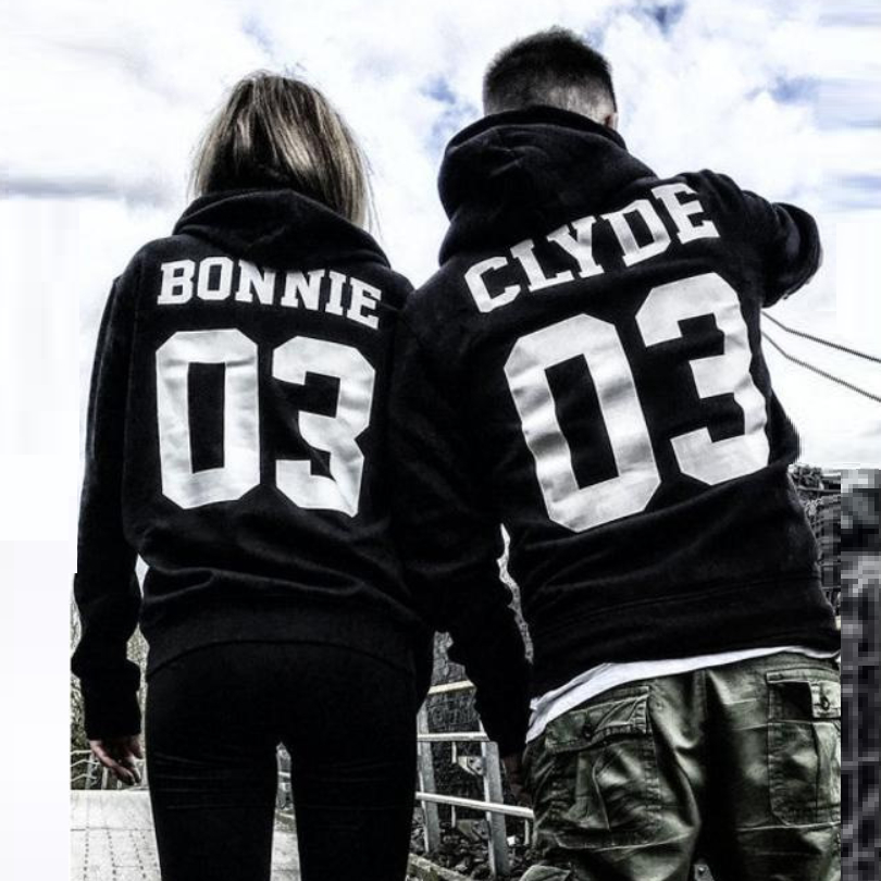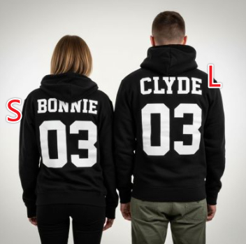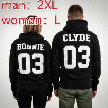 Color: black and white letters female BONNIE03, black and white letters male CLYDE03