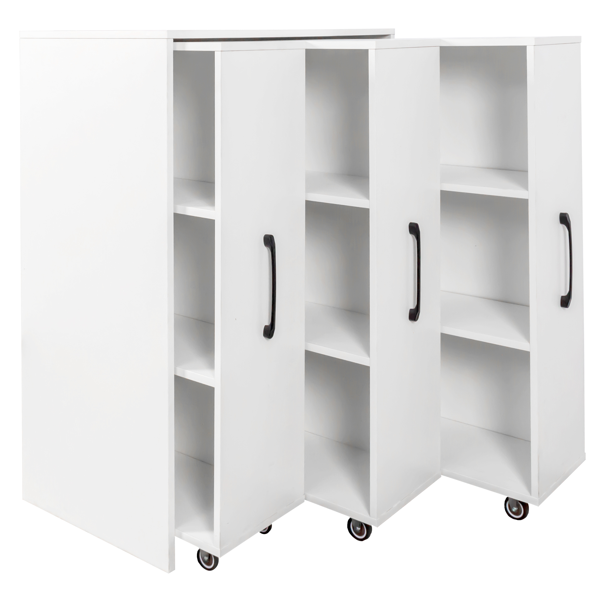 Product Name:Bookcase with Three Pulled Out Doors Shelving Cabinet,3 Tier Floor Standing Bookcase,Slide Out Storage Bookcase file cabinet,Office Bedroom Living Room Hidden Storage Cabinet with Wheels