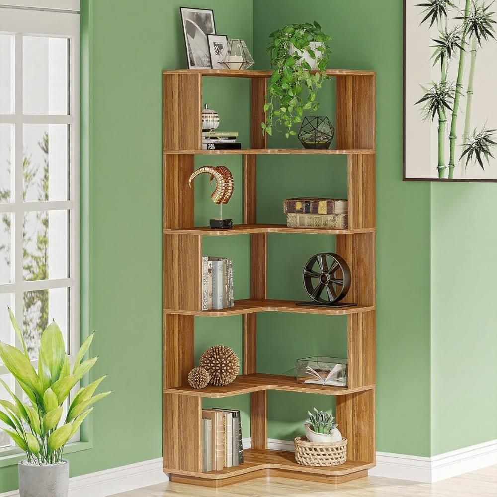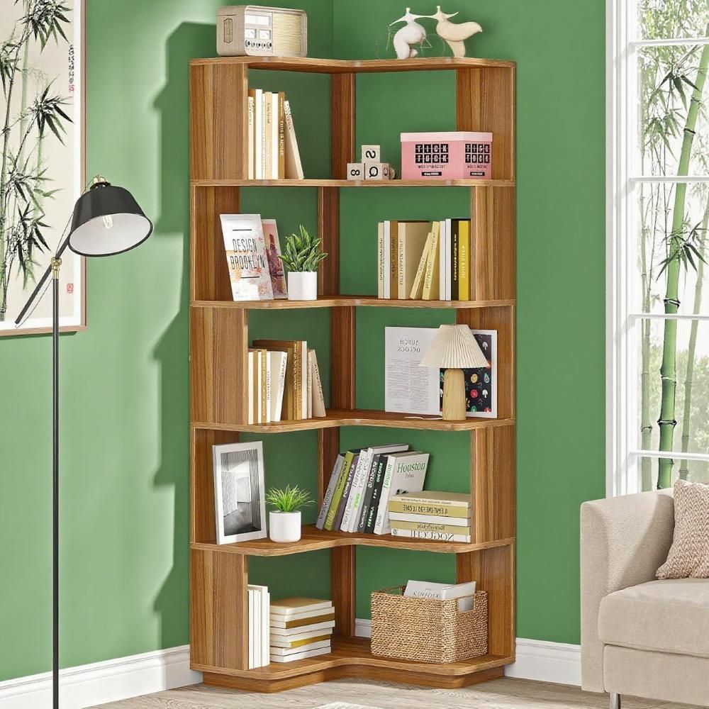 Premium Material: Made of wood grain particle board to ensure the corner bookshelf’s stability and durability, each display shelf can hold up to 60 lb. This free-standing storage rack is a great addition to living room, bedroom, hallway and office etc