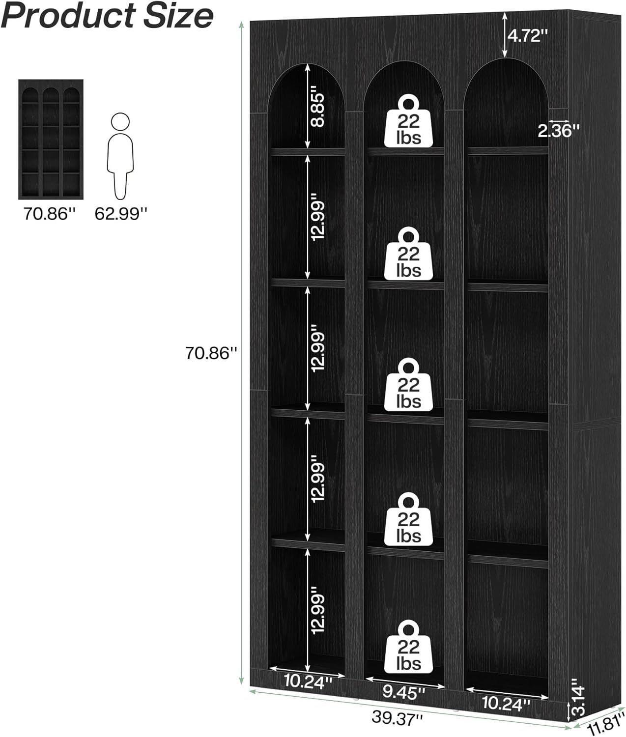 ���������������� �������������� ����������������: Measuring 39.37" W x 11.81" D x 70.87" H, the tall bookcase offers ample room for books, decor, or collectibles. The closed back and sides keep your items secure without worrying about falling off, enhancing its practicality