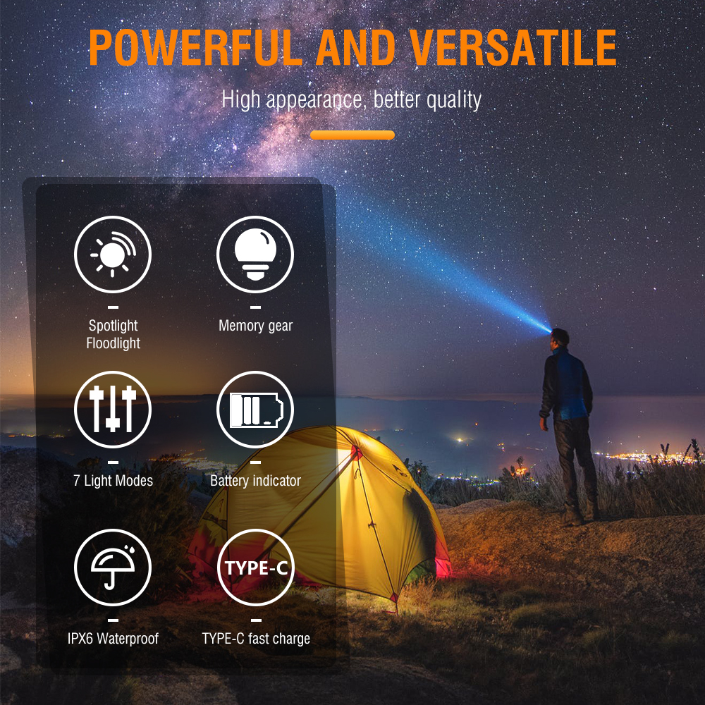 3. Long Press to Enter Stepless Dimming Mode, Stepless Dimming with 8 Brightness Levels Cycling from High to Low (Adjusting Main Lamp)