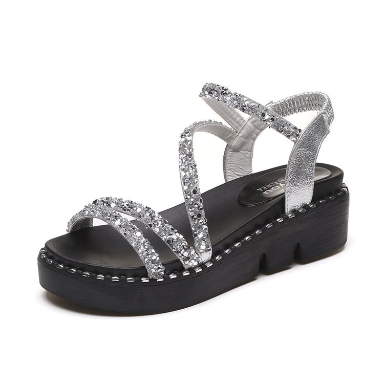 Popular elements: sequins, Buckle, muffin heel, waterproof platform
