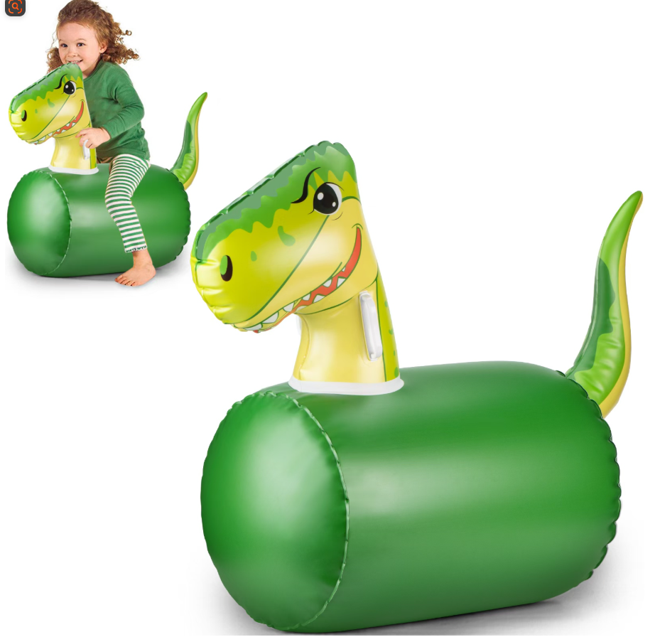 This inflatable dinosaur bouncy horse combines safety, durability, and playful design for endless bouncing fun. With a robust 200LBS weight capacity, it’s built to withstand active play from kids and even adults, while the vibrant green dinosaur shape—complete with a friendly, cartoonish face—sparks imaginative adventures both indoors and outdoors. Made from heavy-duty PVC, it resists punctures and deflates quickly for compact storage or travel. Its stable, cylindrical base and non-slip surface ensure safe bouncing, making it perfect for playrooms, backyards, or birthday parties. Whether used for active play or as a whimsical decor piece, this bouncy horse provides hours of laughter and exercise.