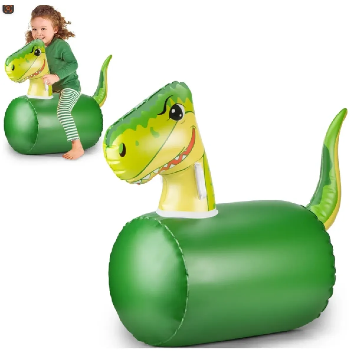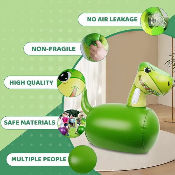This inflatable dinosaur bouncy horse offers a fun and safe way for kids to bounce and play. With a 200LBS weight limit, it's made of durable PVC material to withstand active play. Its eye-catching green dinosaur design encourages imaginative play both indoors and outdoors.