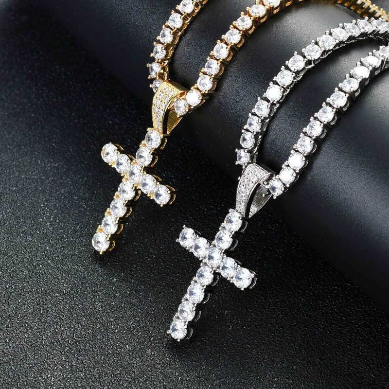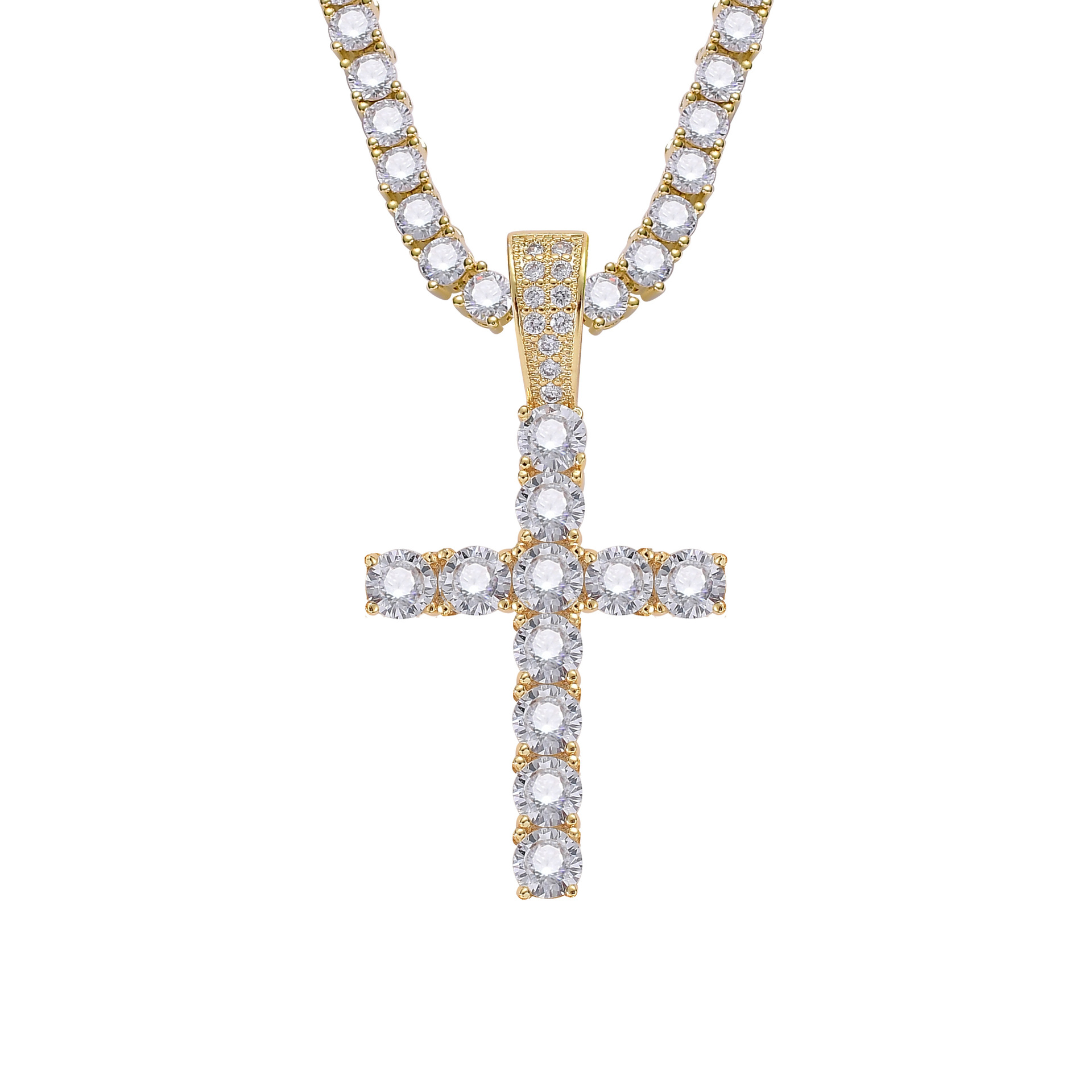 Product Name: Cross PendantProduct material: real gold plating + copper micro-inlaid zircon