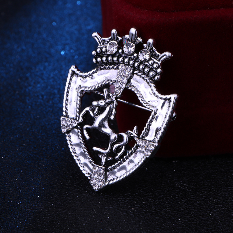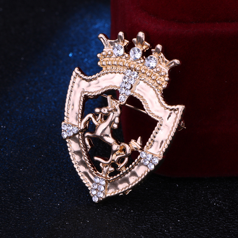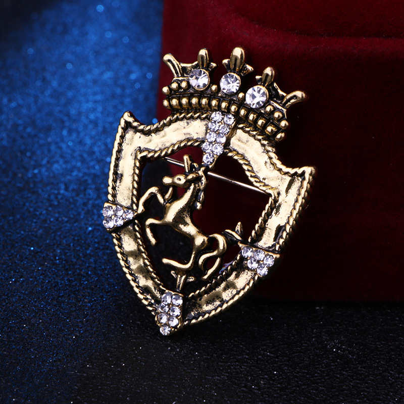 Bovvsky retro Rhinestone Crown Brooch for Mens Suit Corsage Unicorn Horse brooch Lapel Pin Badge Clothing & Accessories