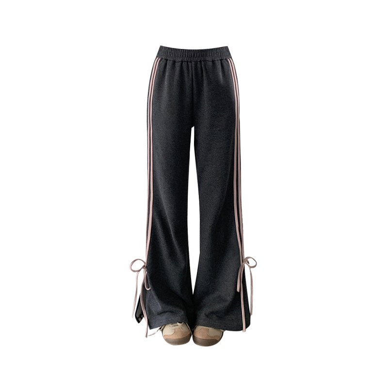 Bow Bandage Contrast Color Sports Casual Pants