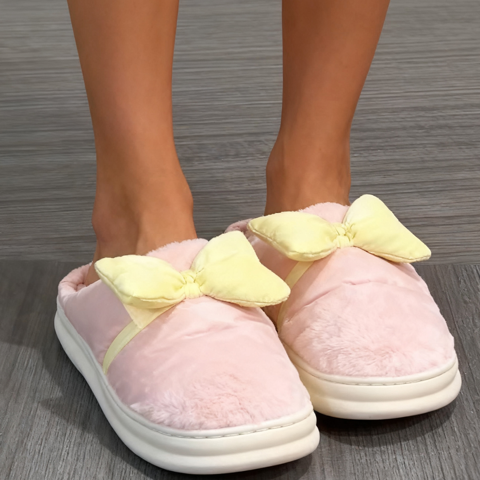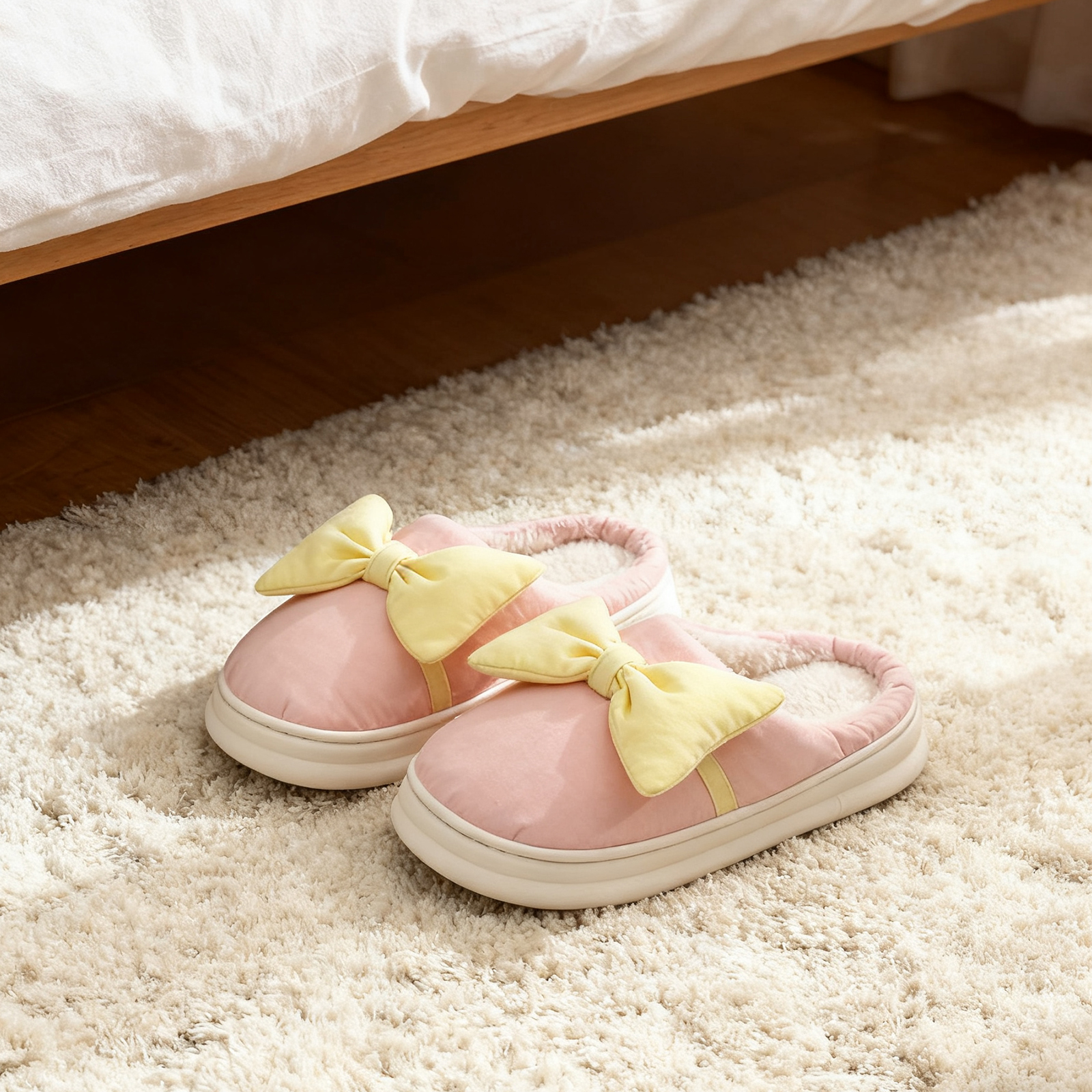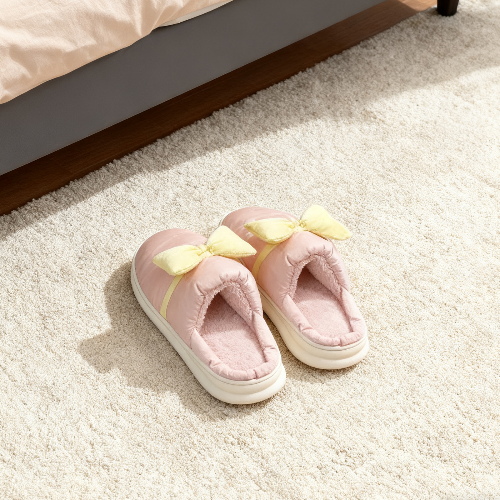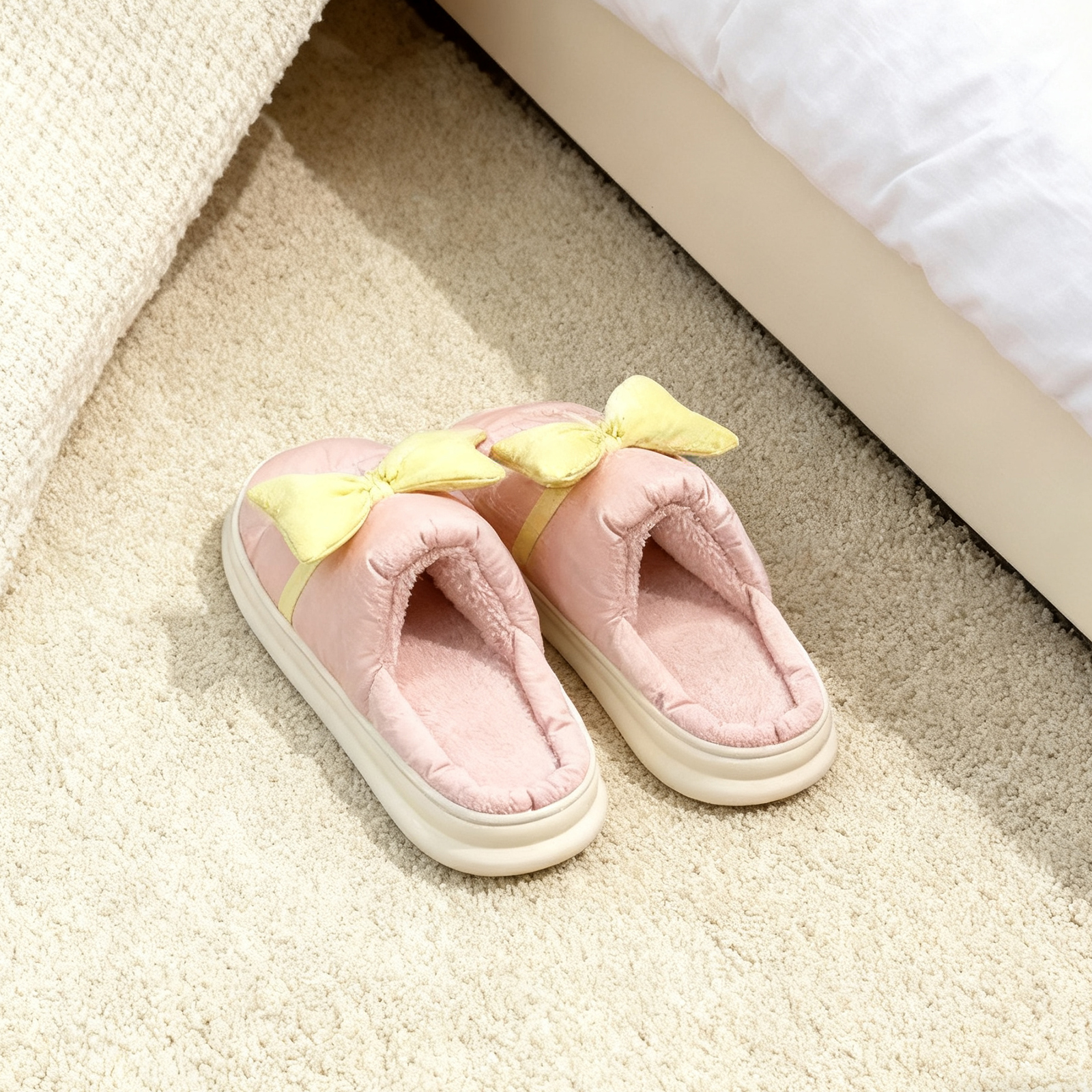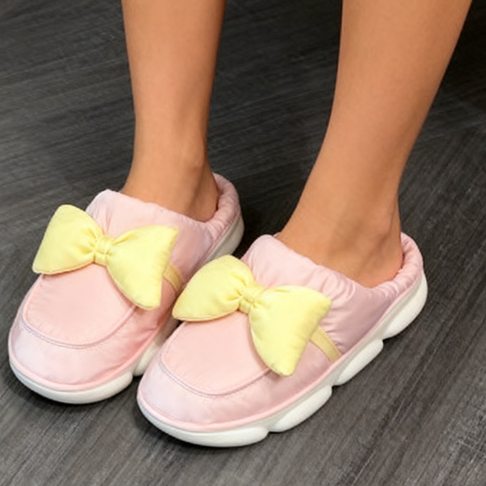 Bow Cotton Slippers - Pink