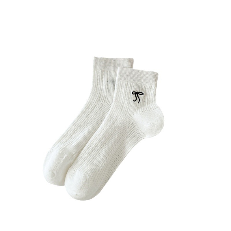 Bow Embroidered Short Thin Socks