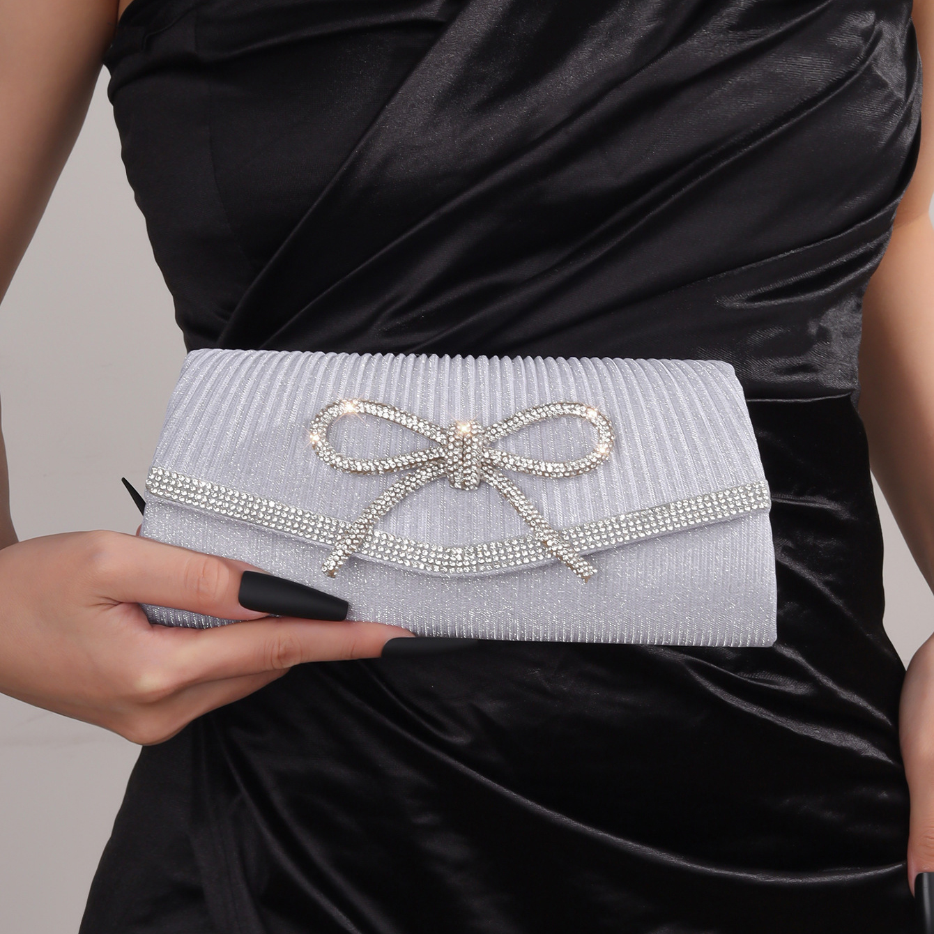 Bow Evening Bag Sparkly Clutch Purses For Women Wedding Glitter Rhinestone Party Prom Purse Dressy Clutch Bags
