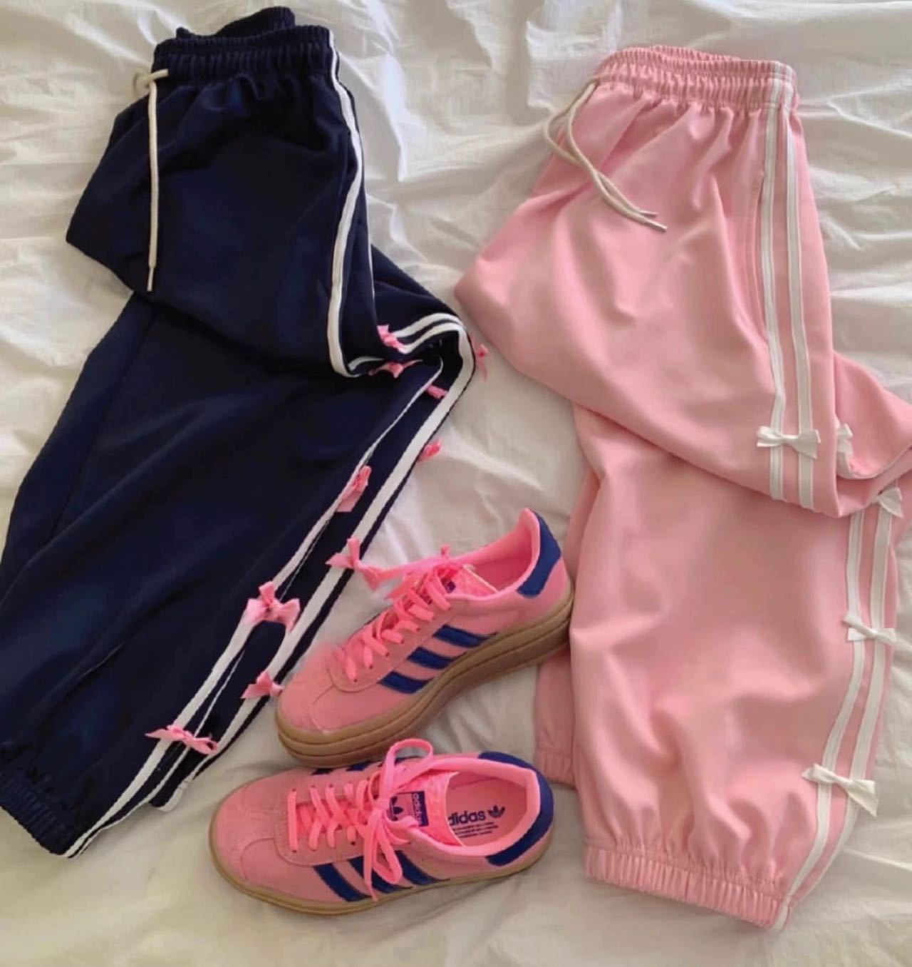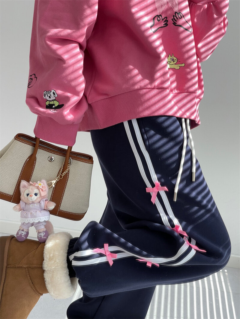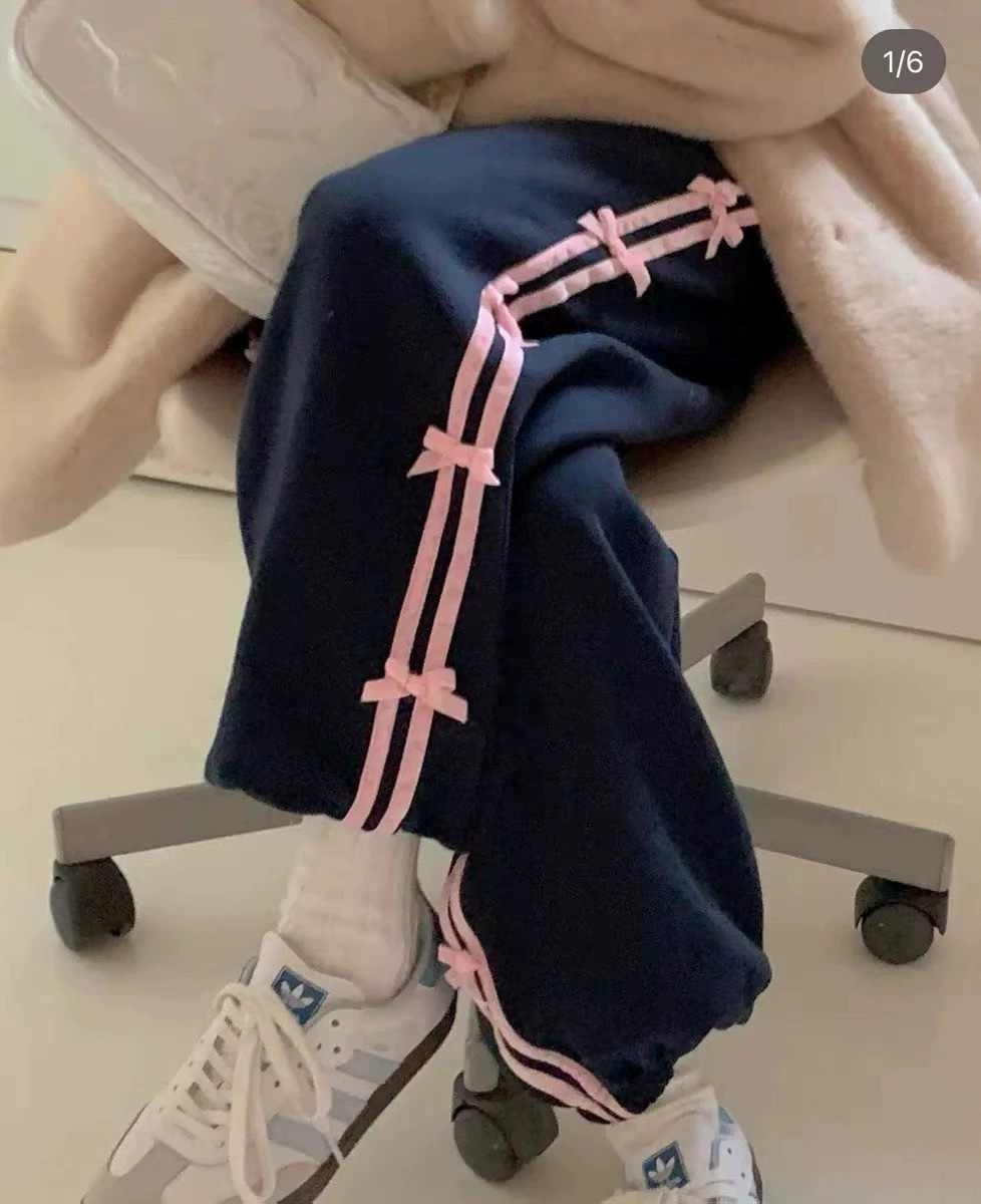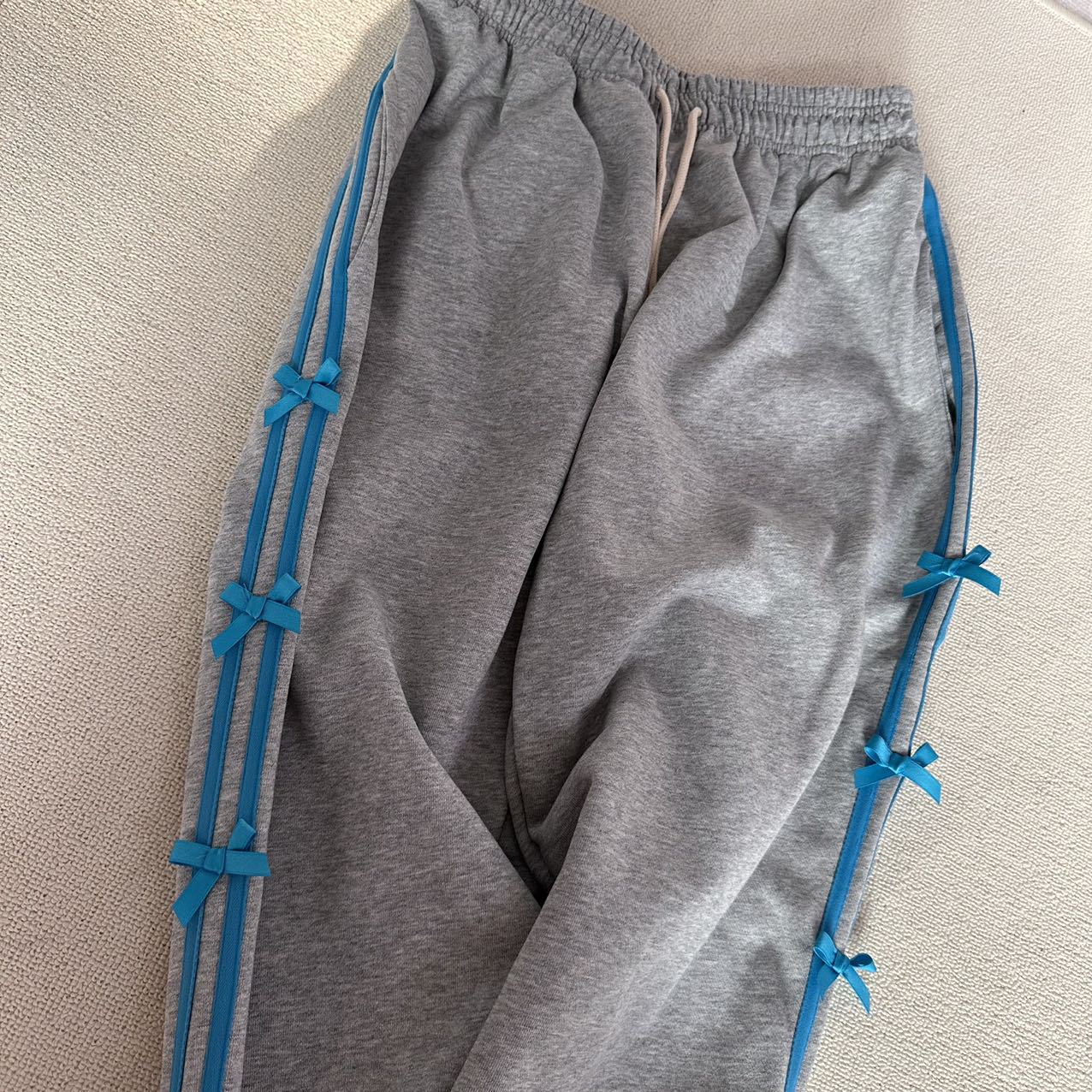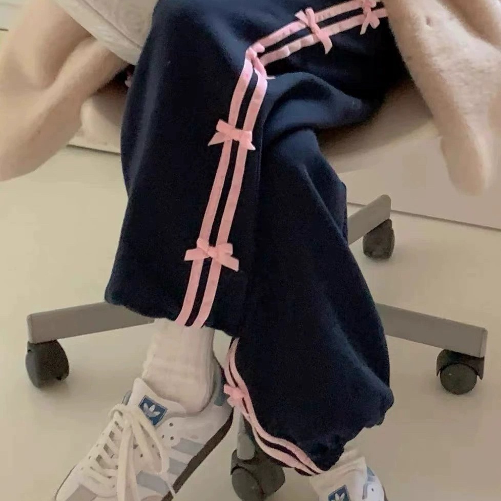 Color: blue striped small bowknot sweatpants gray, pink striped small bowknot sweatpants navy blue, white striped small bowknot sweatpants navy blue, white striped small bowknot sweatpants pink
