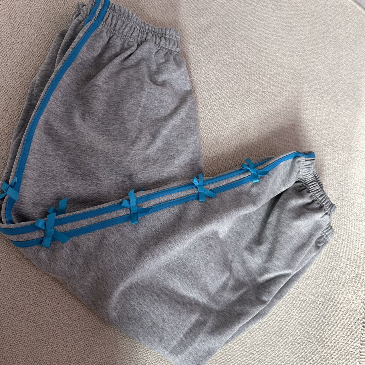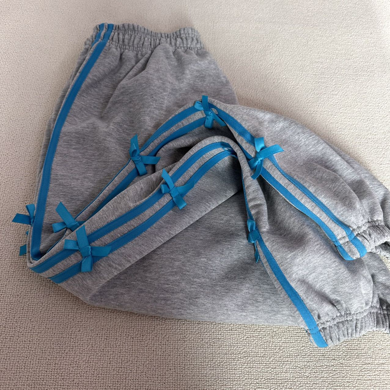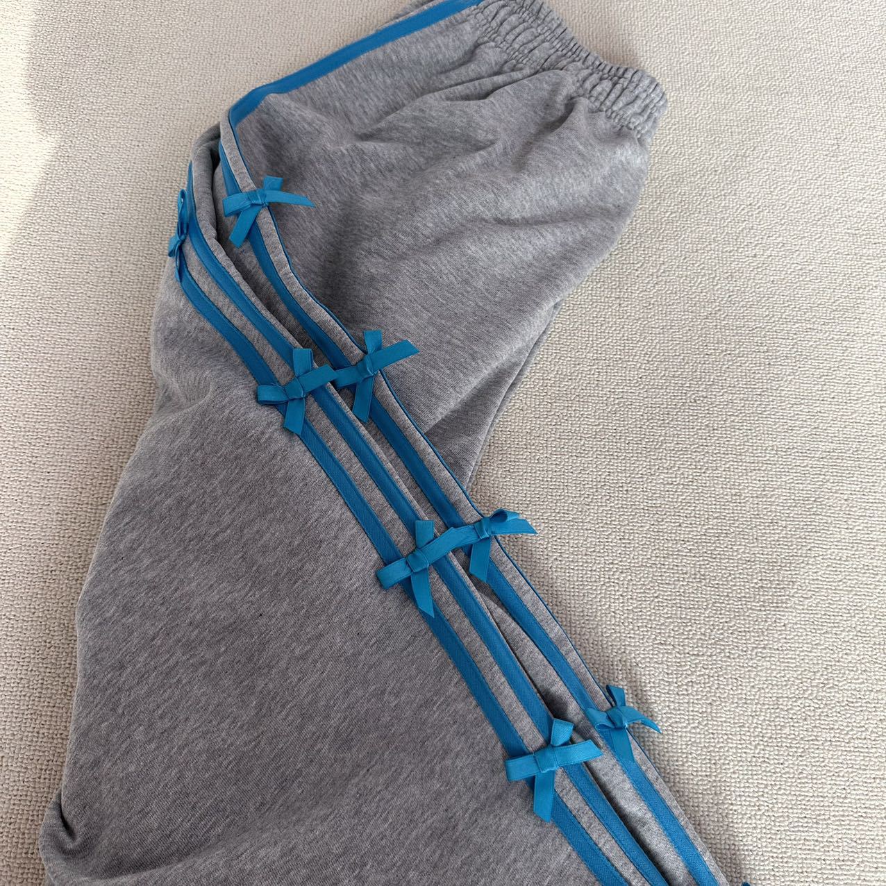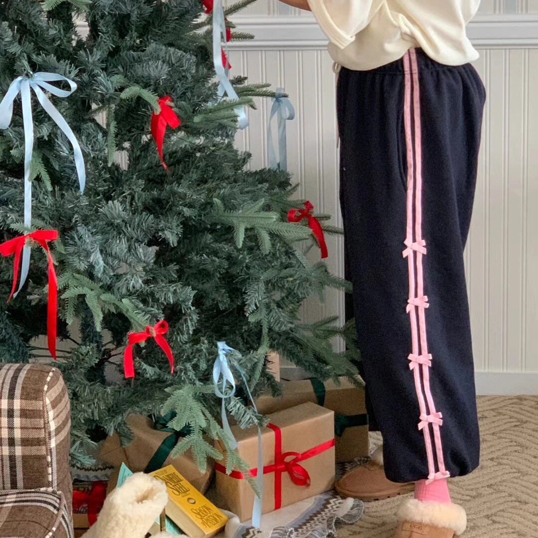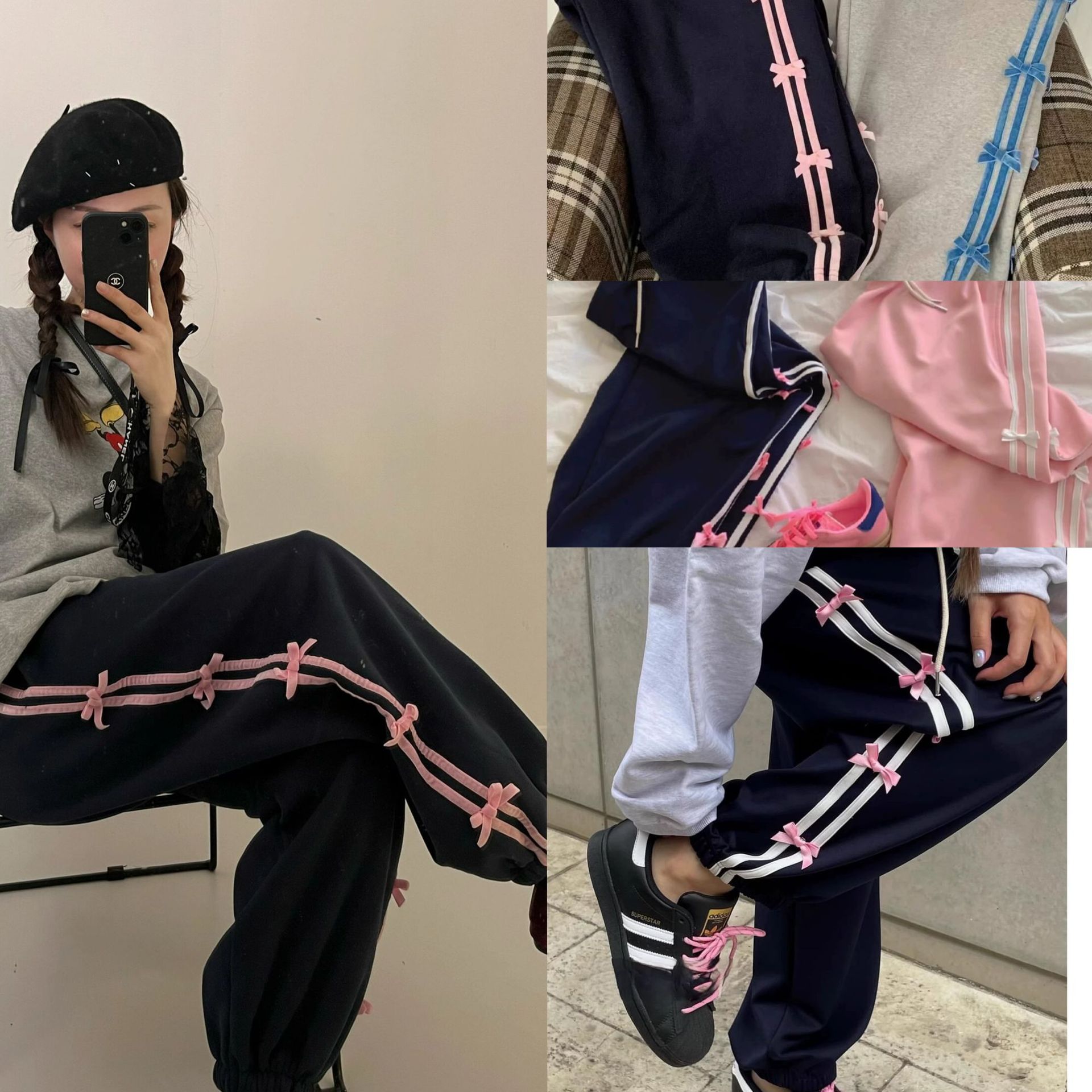 Color: blue striped small bowknot sweatpants gray, pink striped small bowknot sweatpants navy blue, white striped small bowknot sweatpants navy blue, white striped small bowknot sweatpants pink