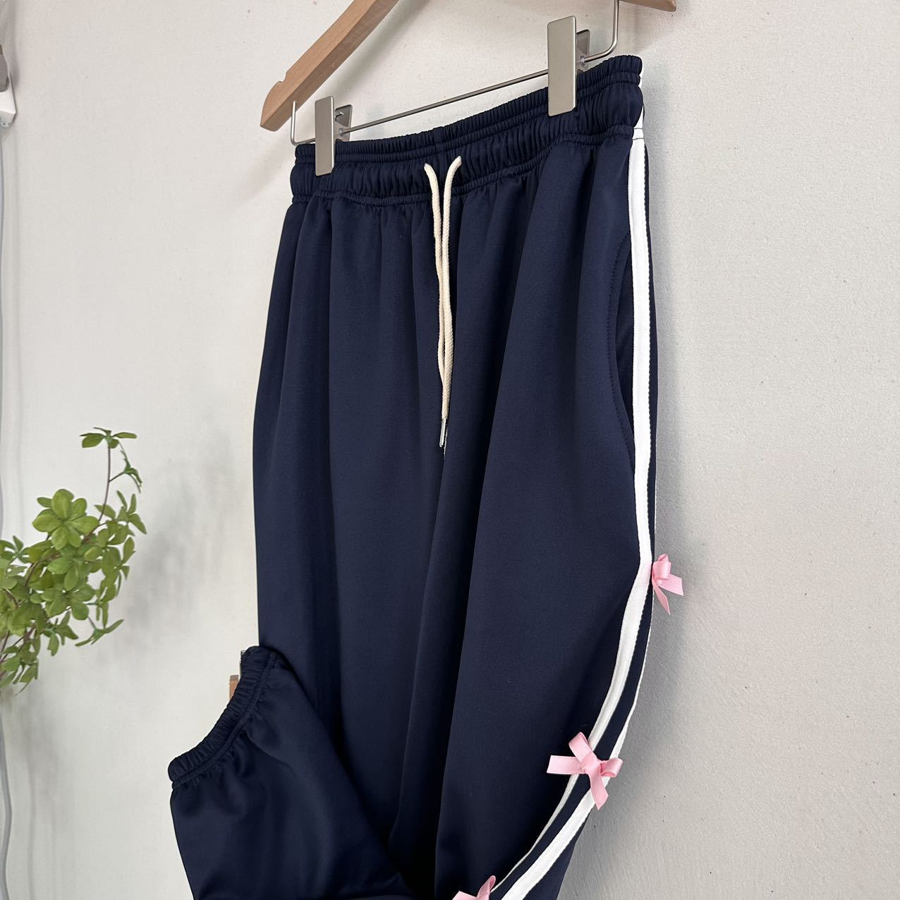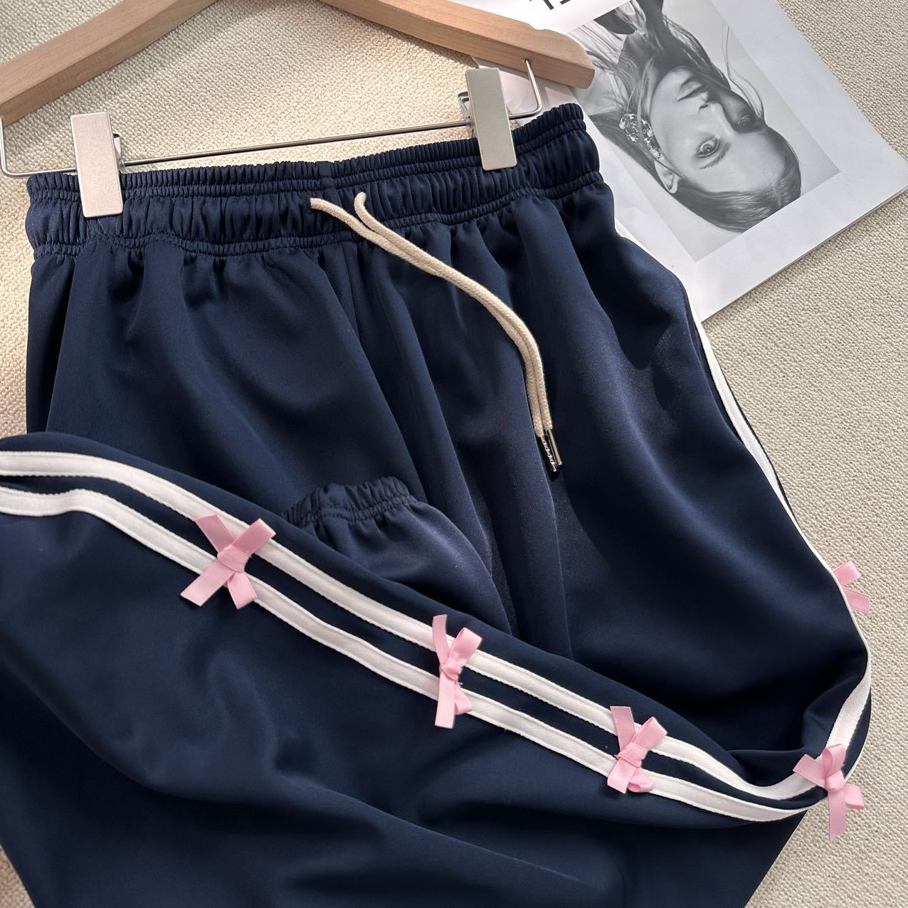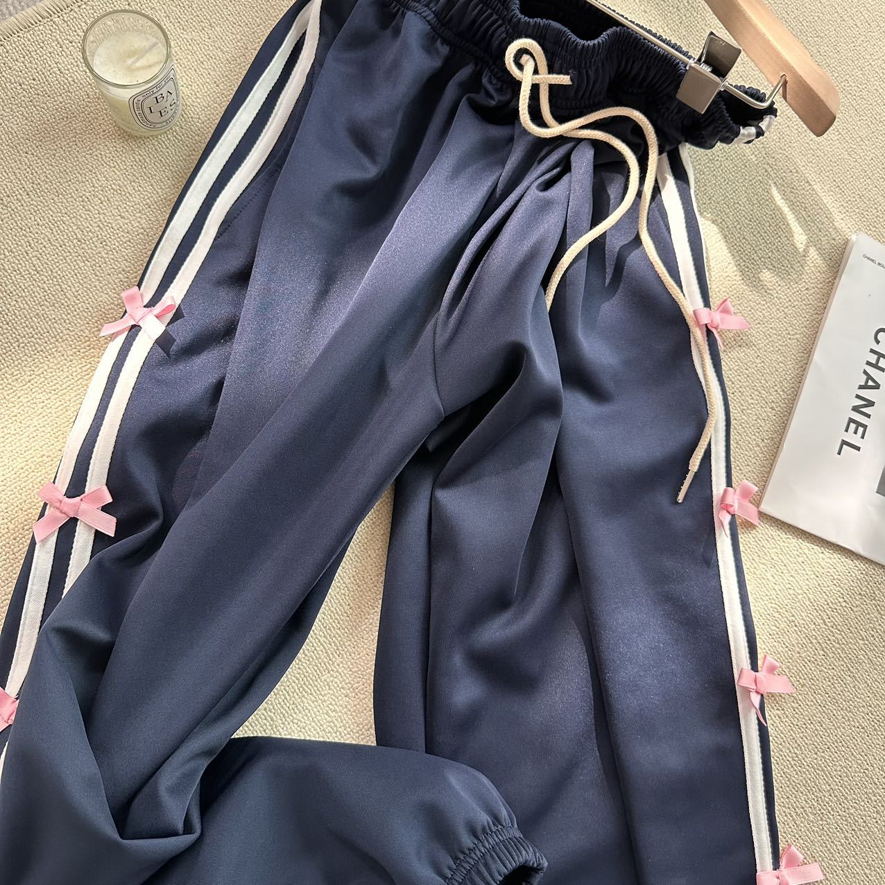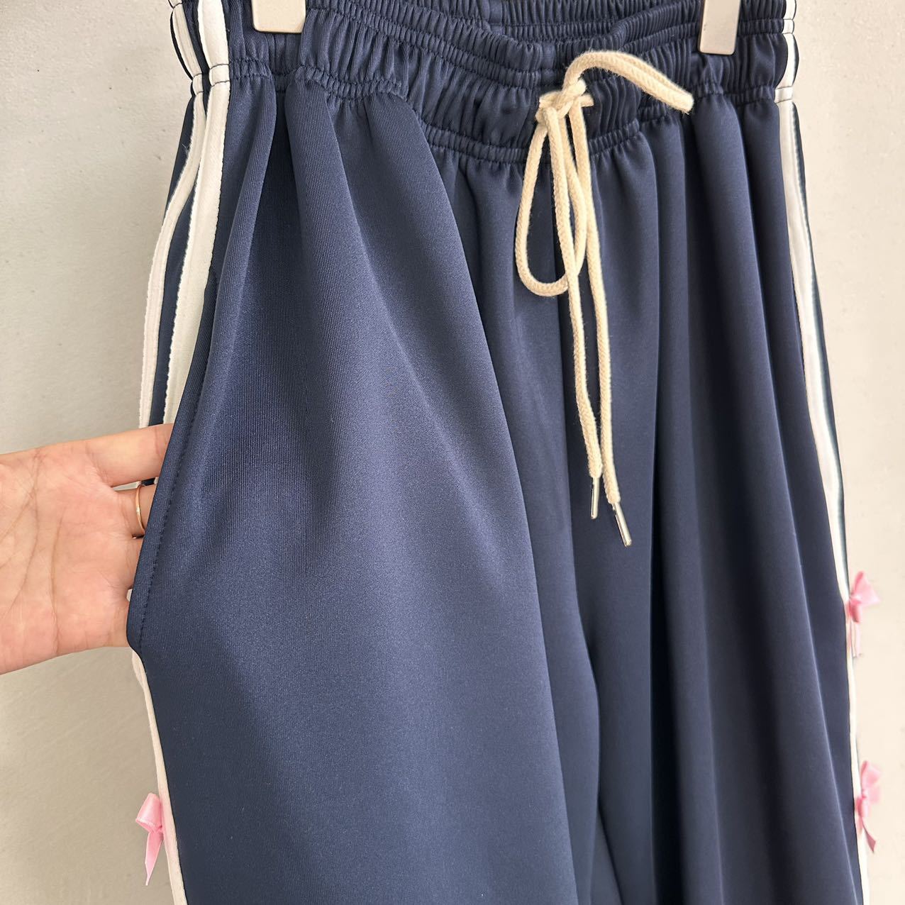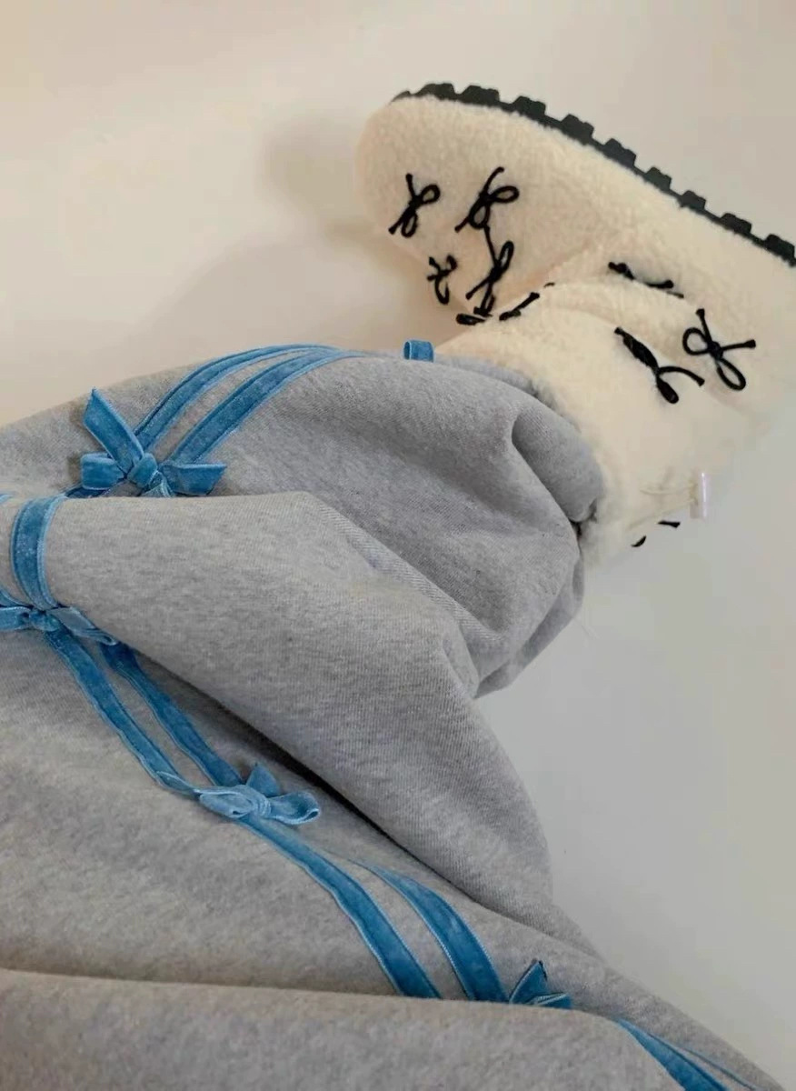 Color: blue striped small bowknot sweatpants gray, pink striped small bowknot sweatpants navy blue, white striped small bowknot sweatpants navy blue, white striped small bowknot sweatpants pink