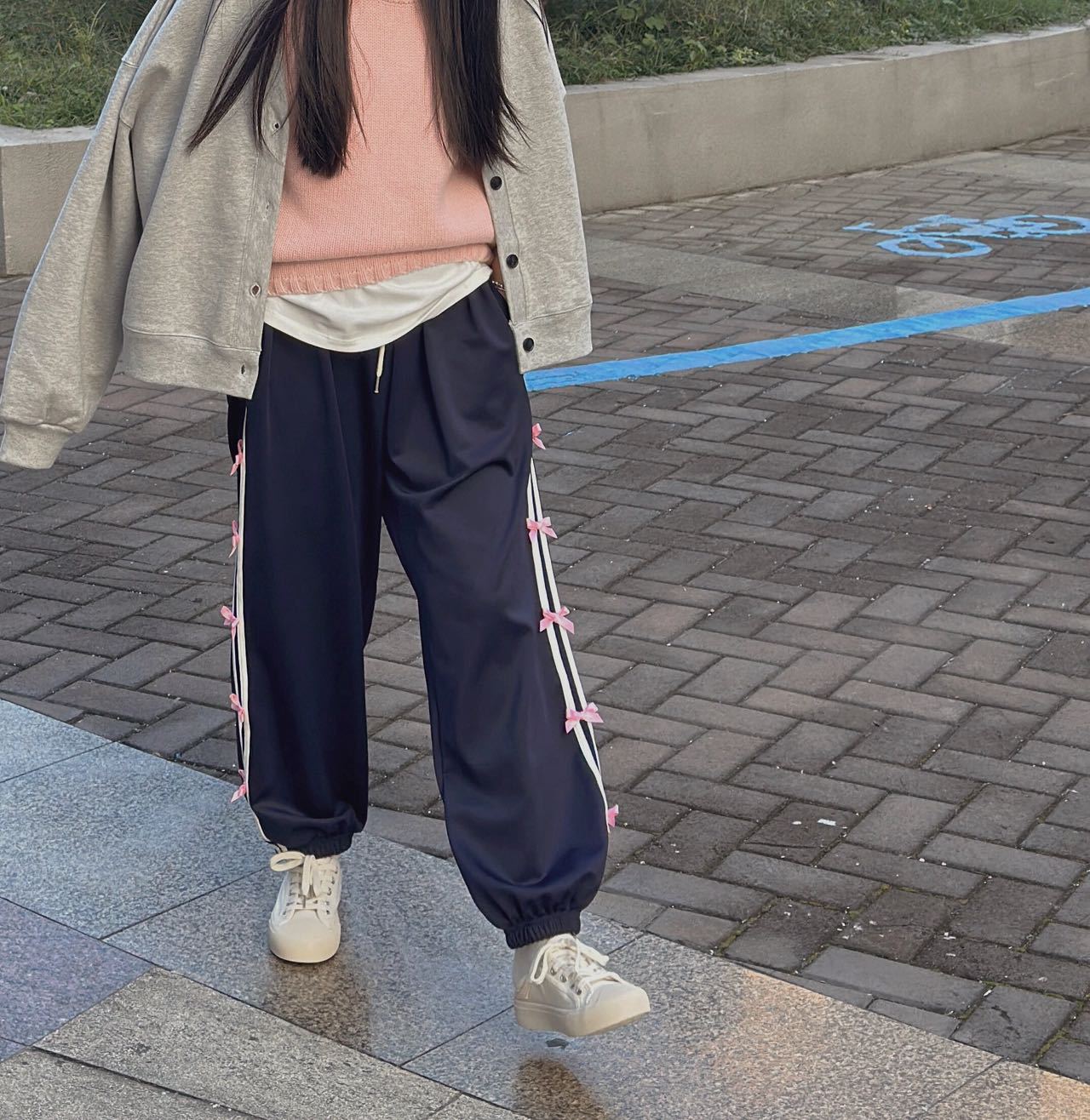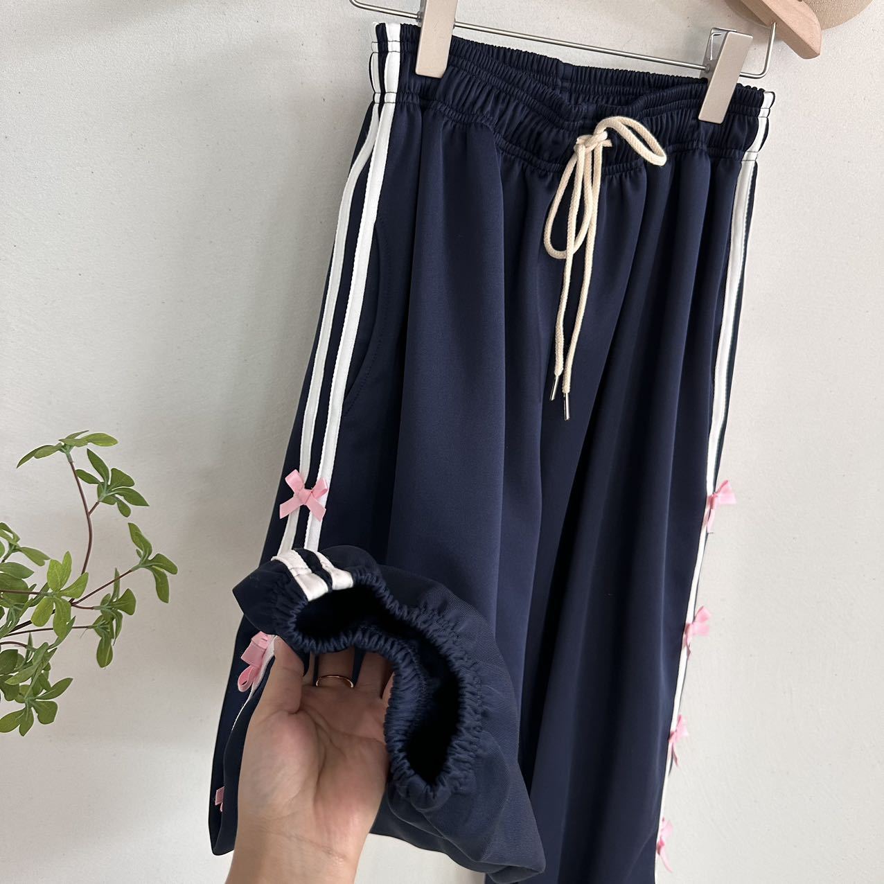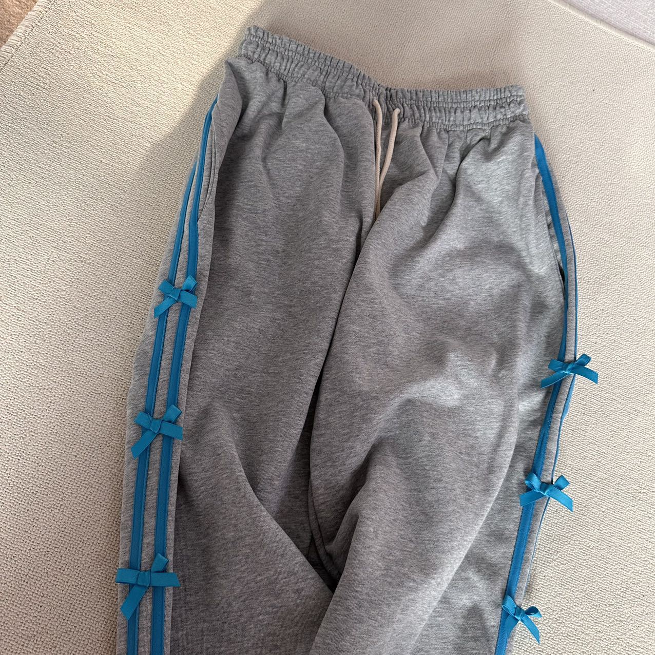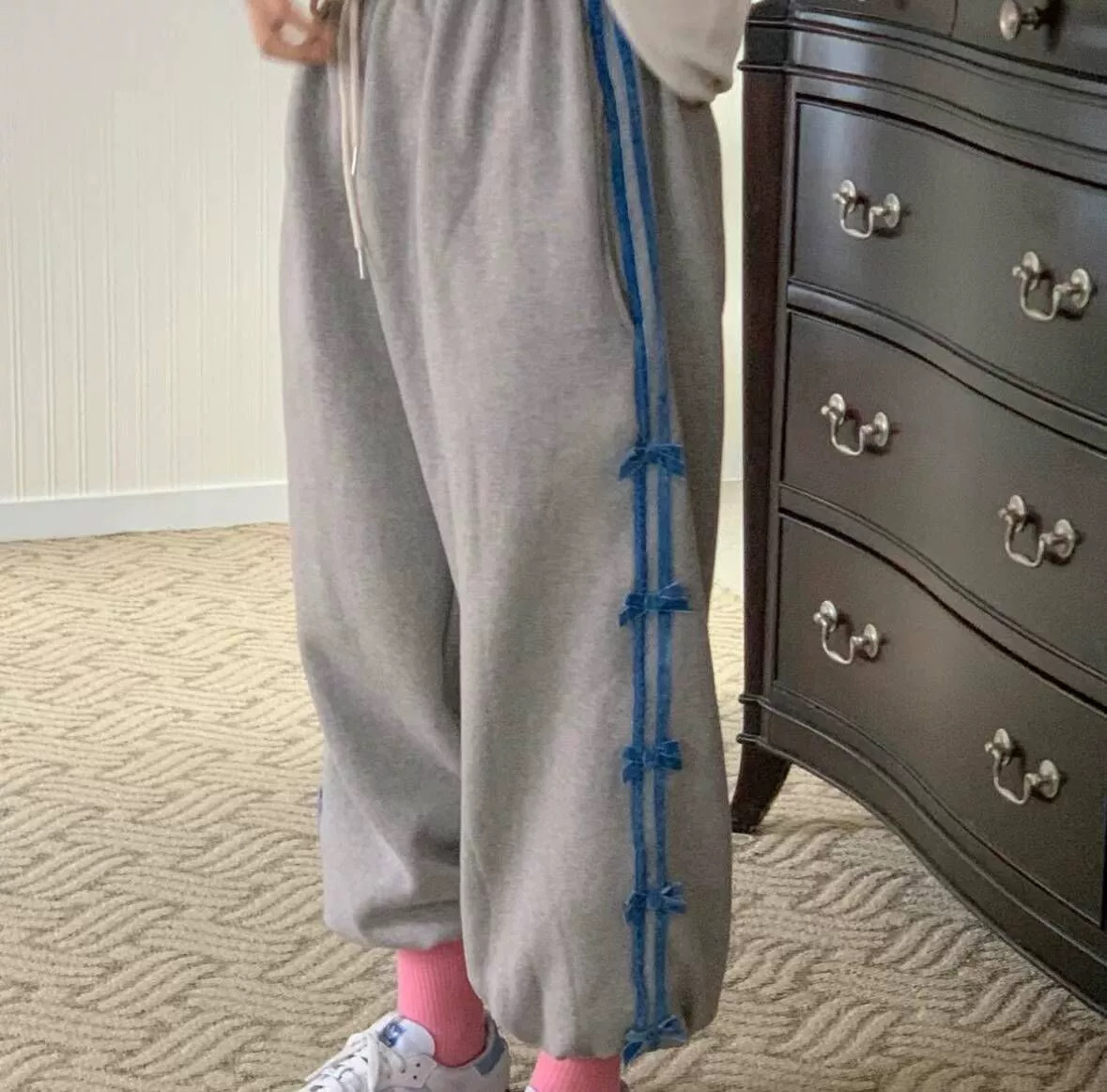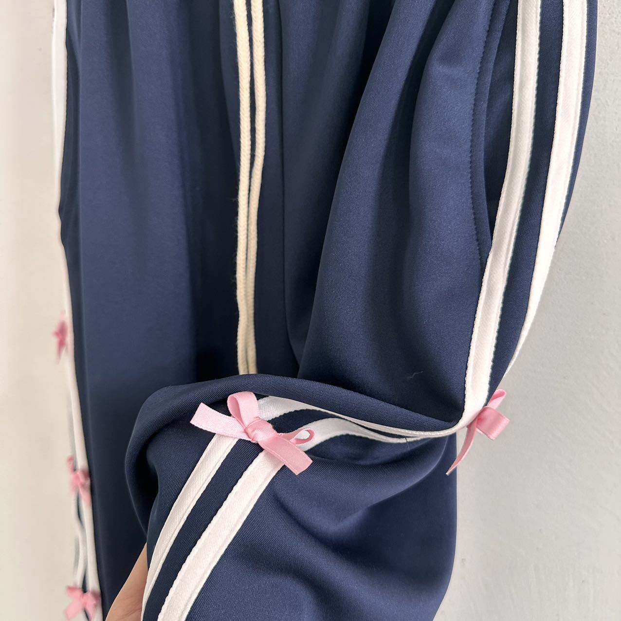 Color: blue striped small bowknot sweatpants gray, pink striped small bowknot sweatpants navy blue, white striped small bowknot sweatpants navy blue, white striped small bowknot sweatpants pink