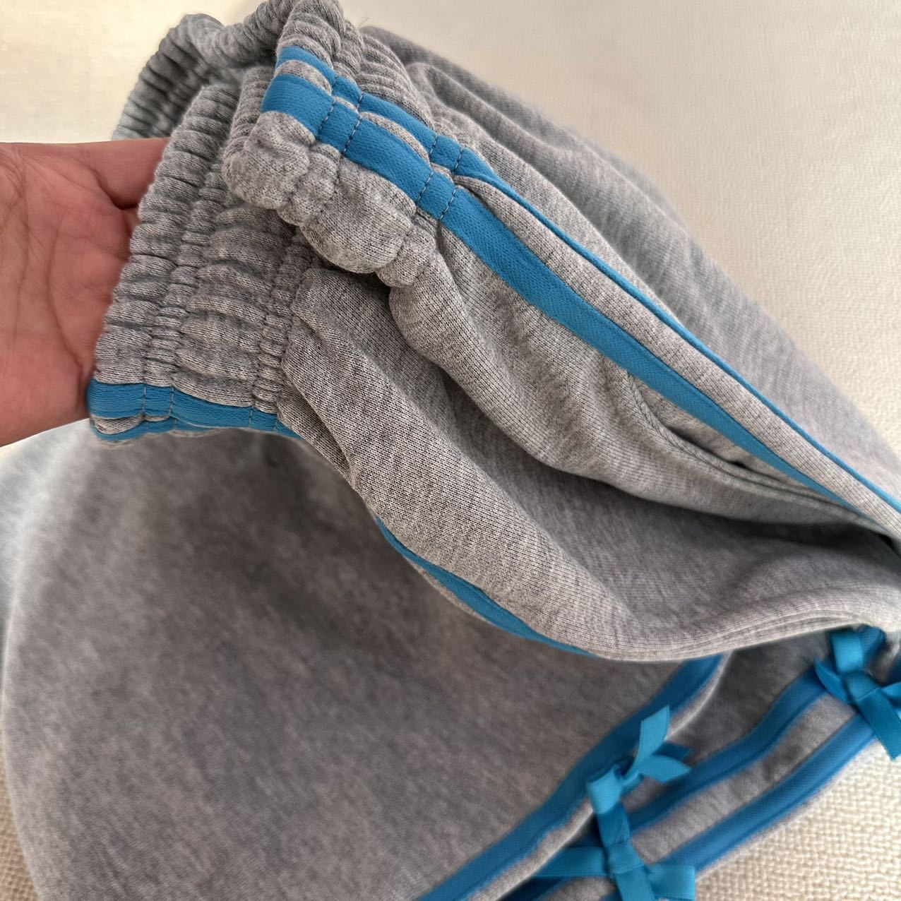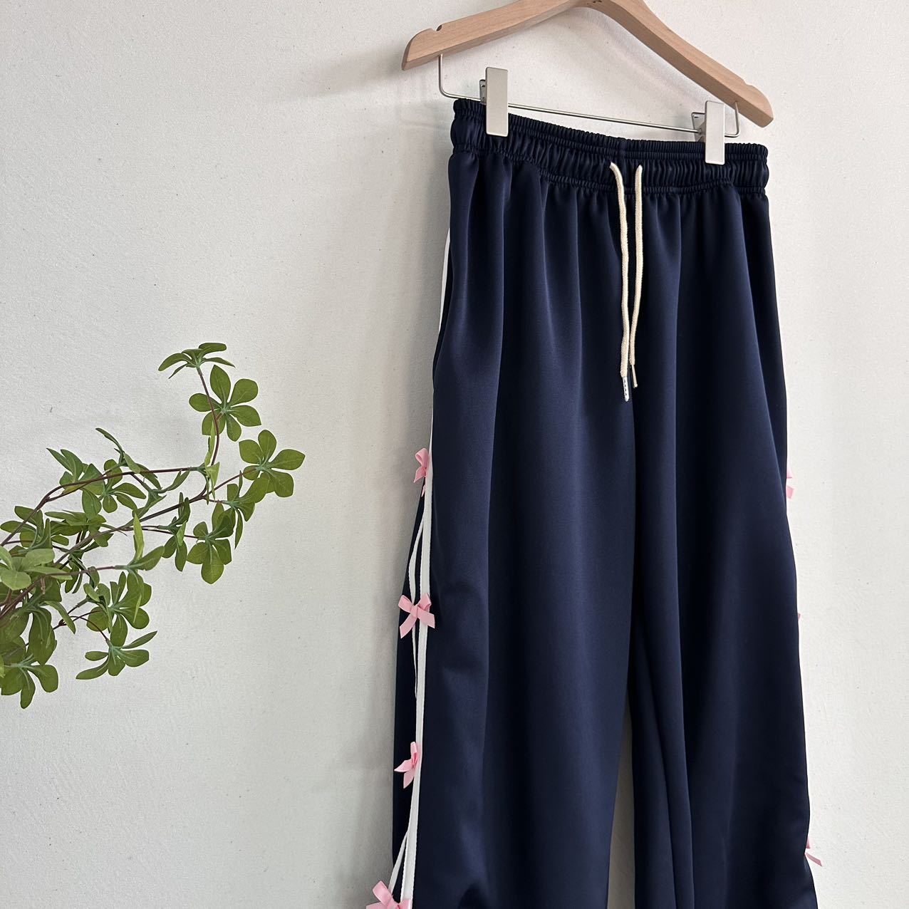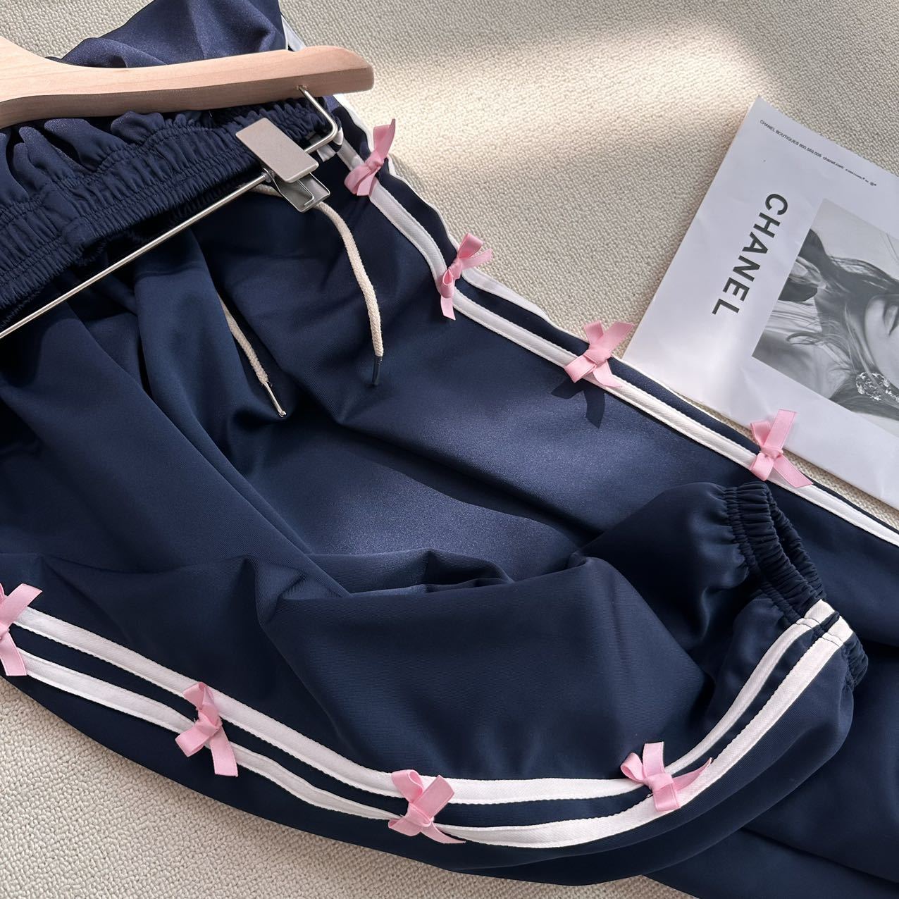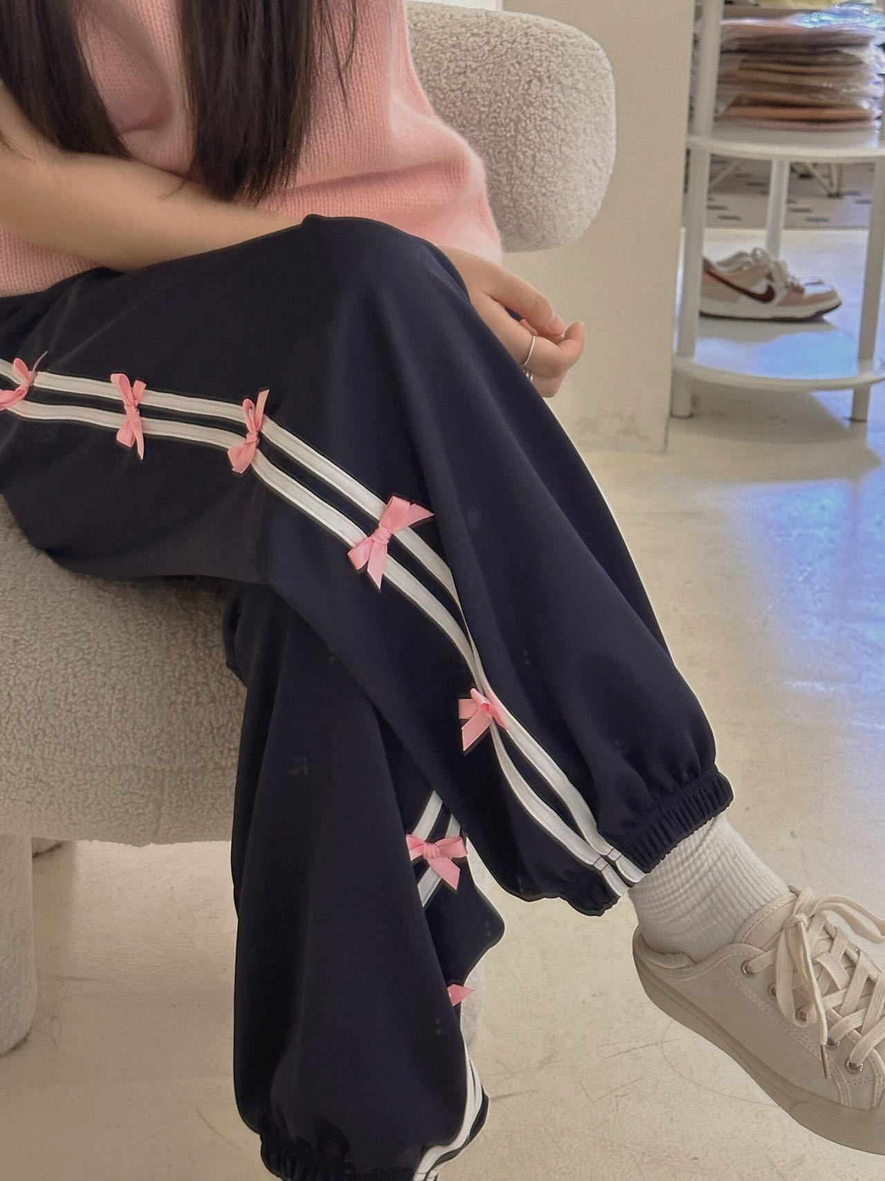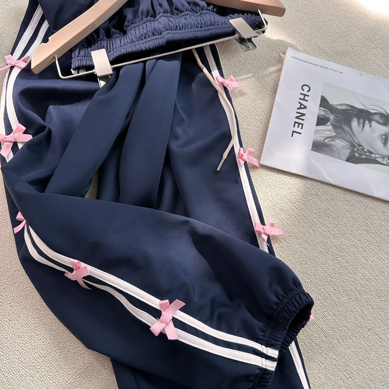 Color: blue striped small bowknot sweatpants gray, pink striped small bowknot sweatpants navy blue, white striped small bowknot sweatpants navy blue, white striped small bowknot sweatpants pink