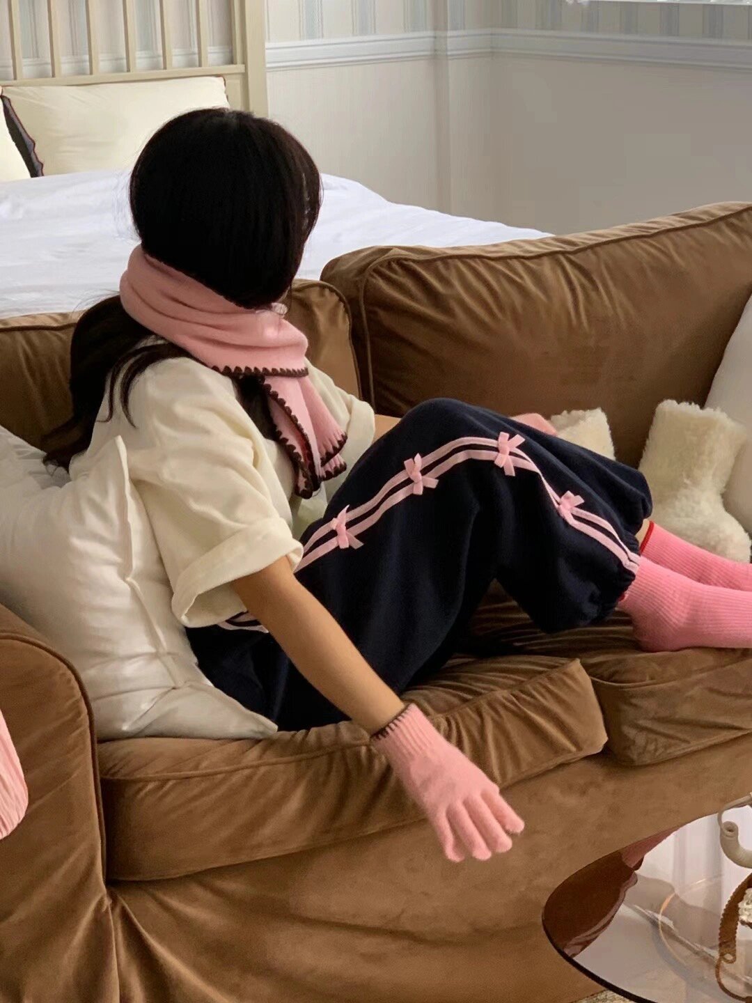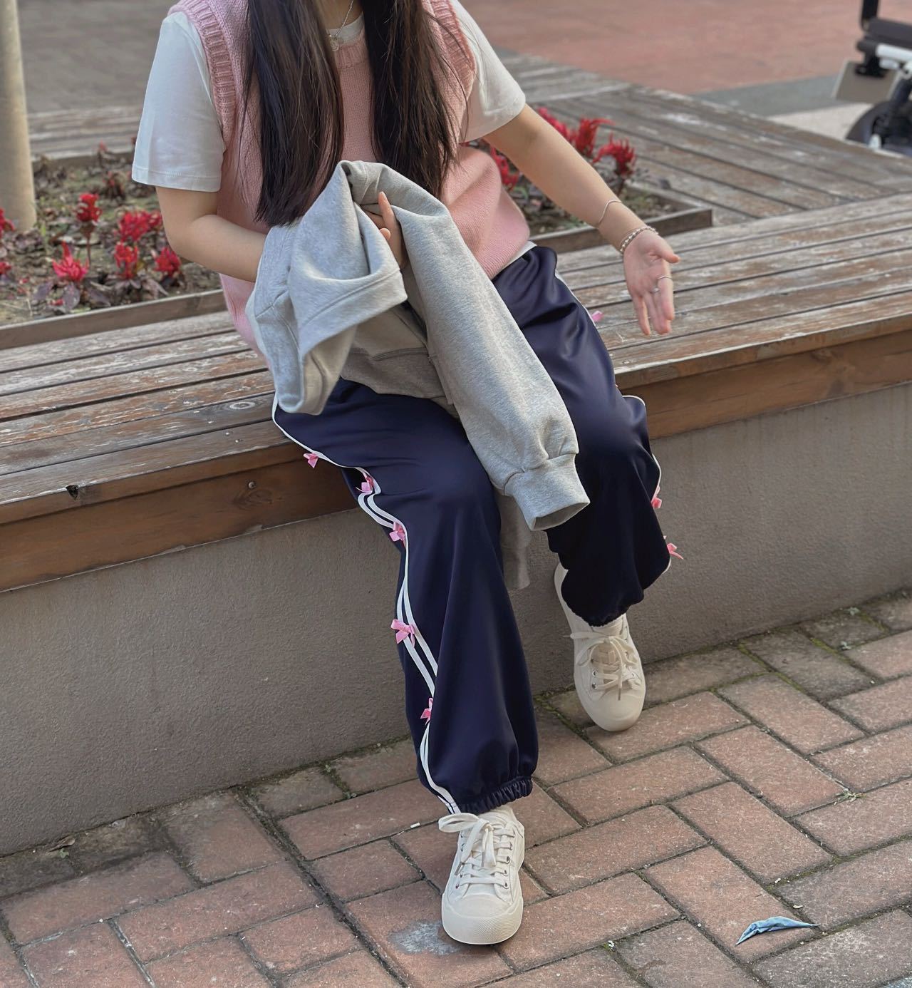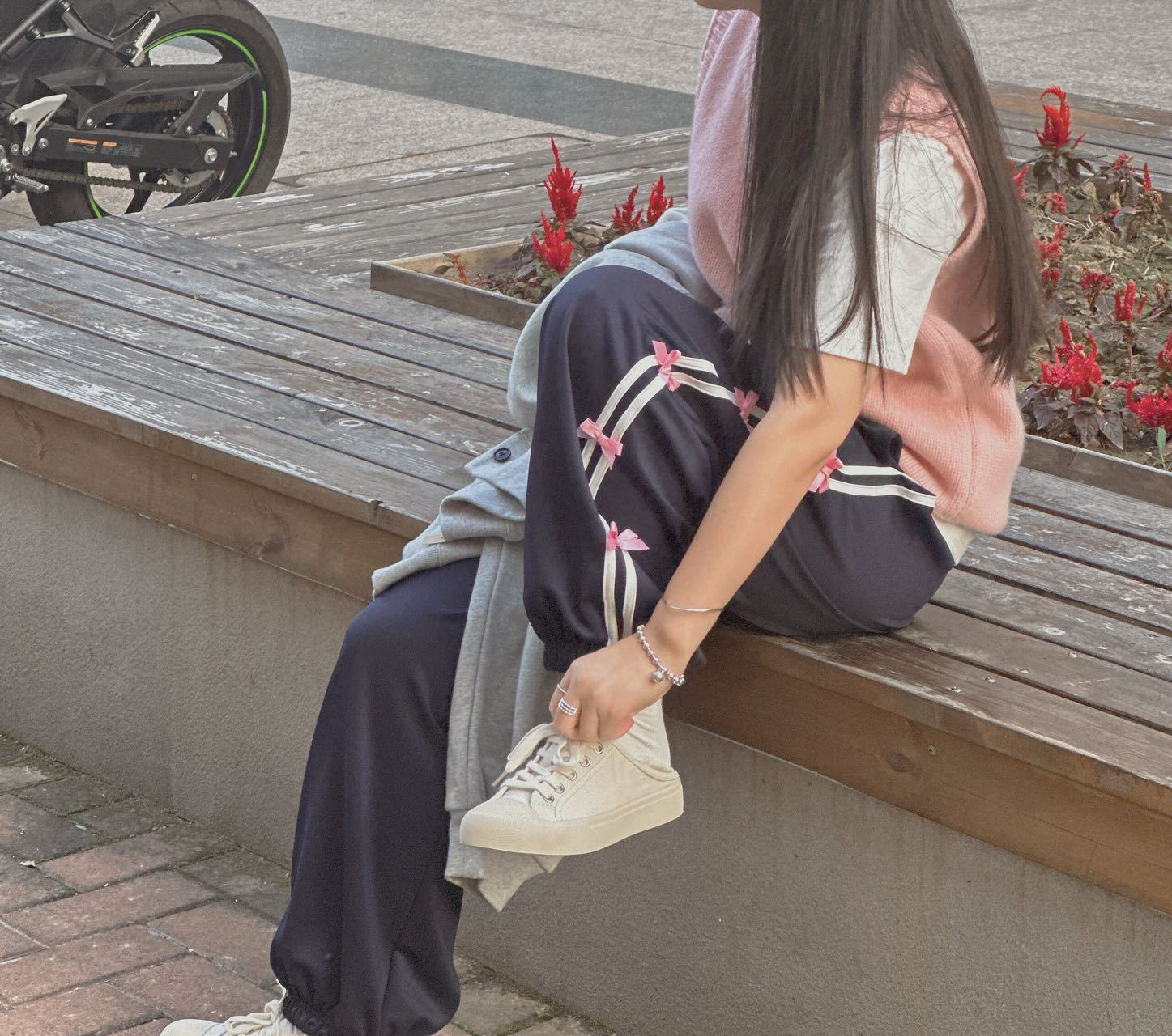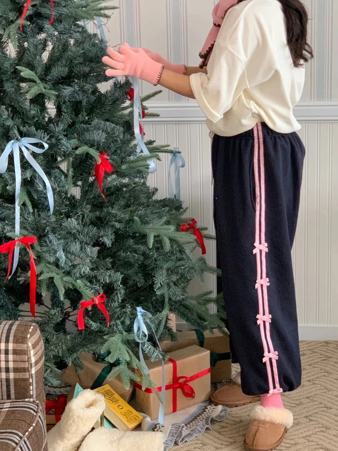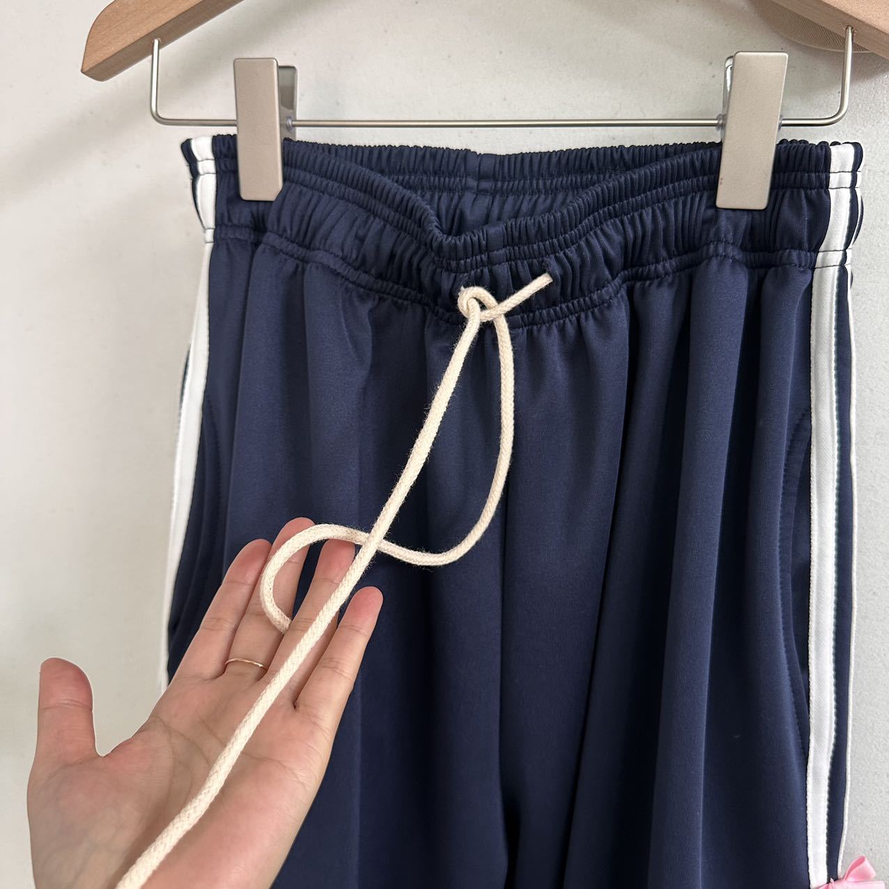 Color: blue striped small bowknot sweatpants gray, pink striped small bowknot sweatpants navy blue, white striped small bowknot sweatpants navy blue, white striped small bowknot sweatpants pink