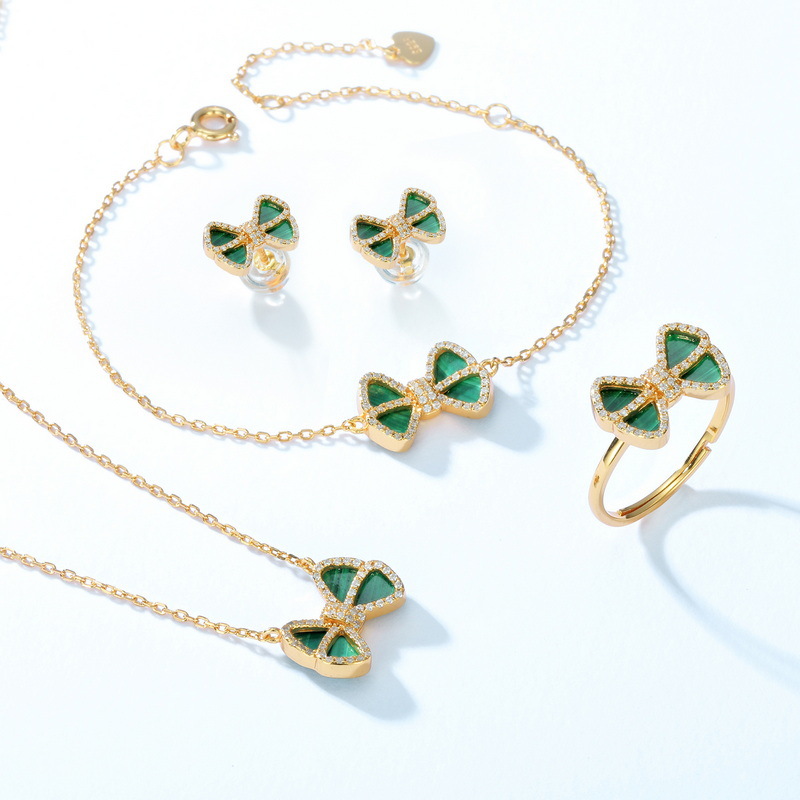 Bow Malachite Gold Plated Open Loop