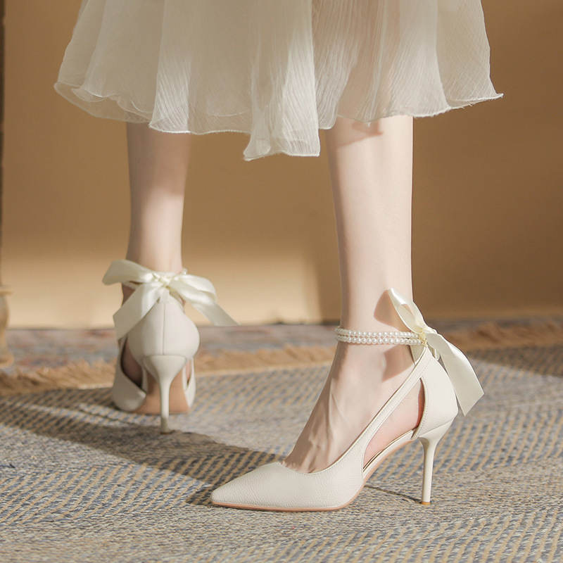 Bow Temperament With Skirt Bridesmaid Stiletto Heel White Thin Shoes