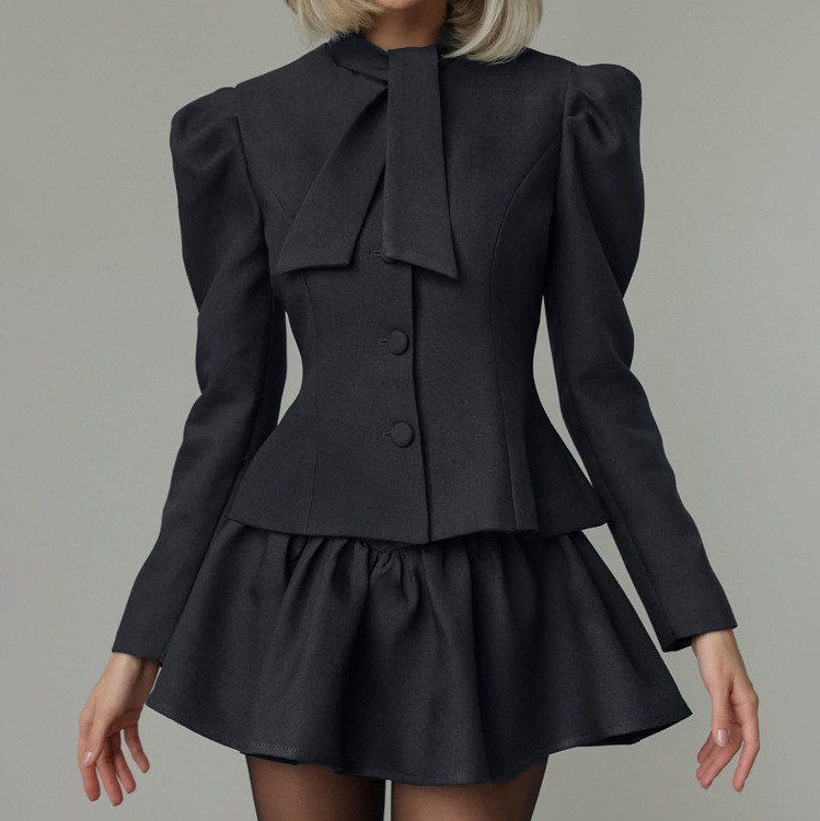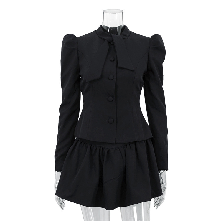 Bow Tie Long Sleeve Suit Top Skirt Two-piece Set
