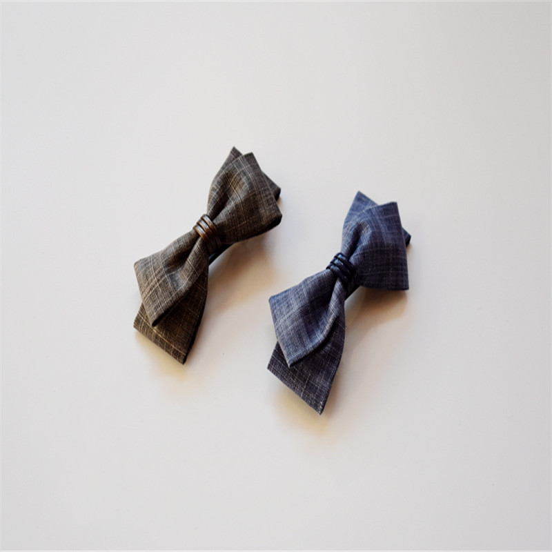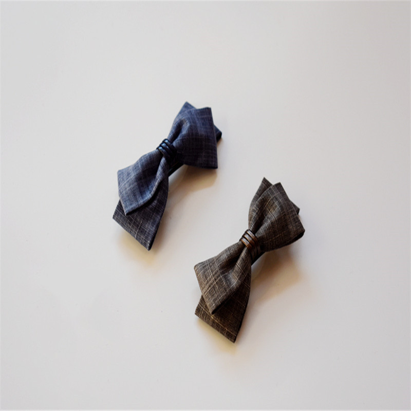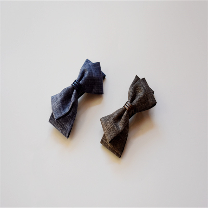 Grey and blue cloth art crossed double layer bowknot ponytail clip edge clip, material for imported cotton and hemp and leather rope.