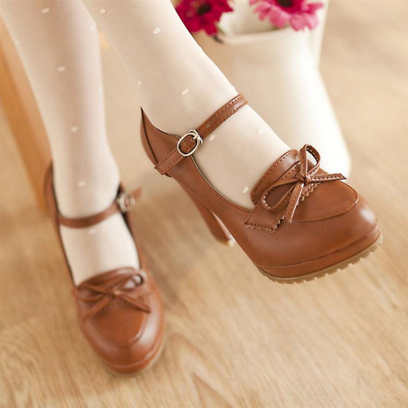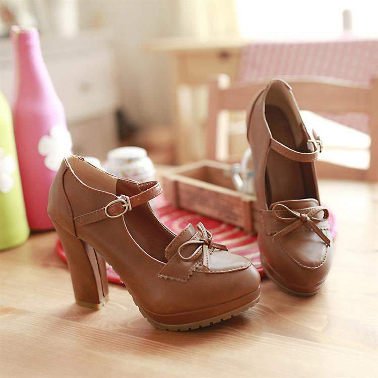 Bowknot high heels thick heel