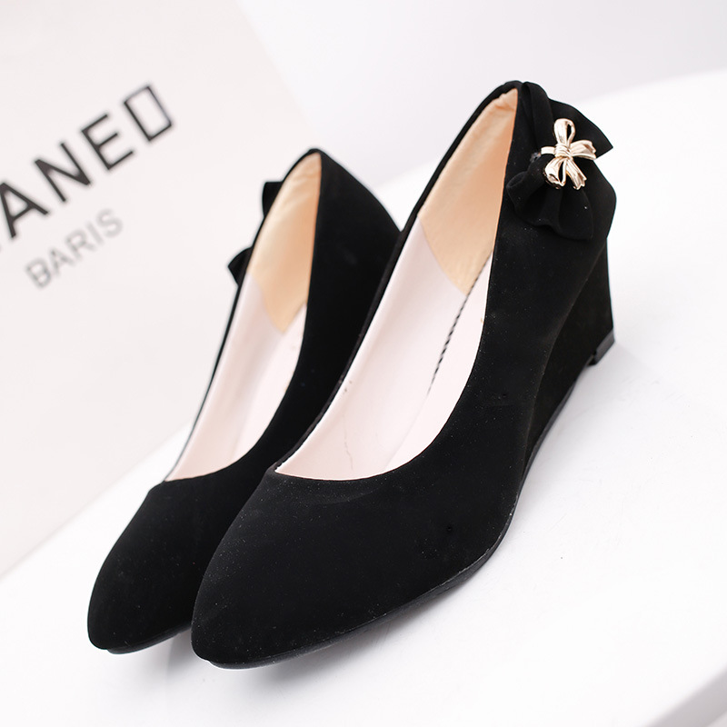 Popular elements: bow, shallow mouth, wedge heel